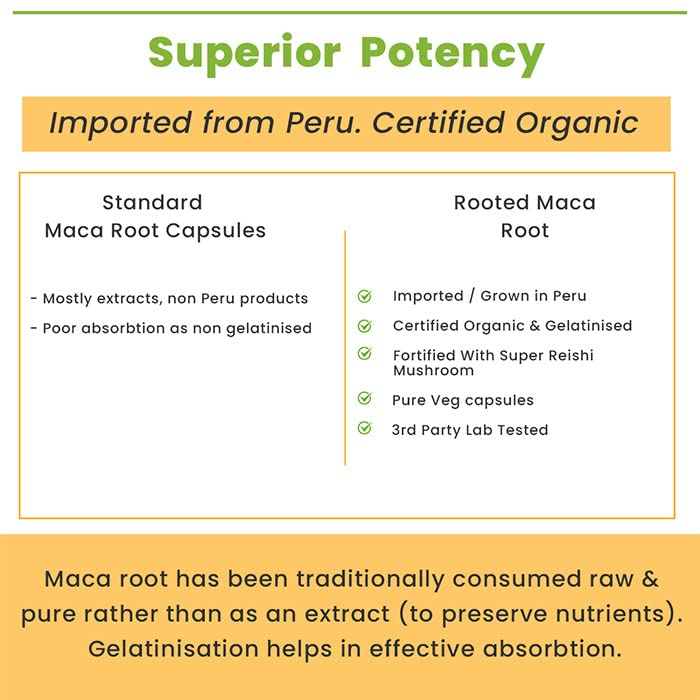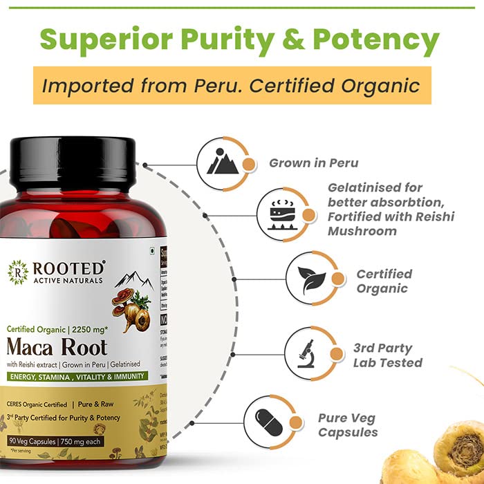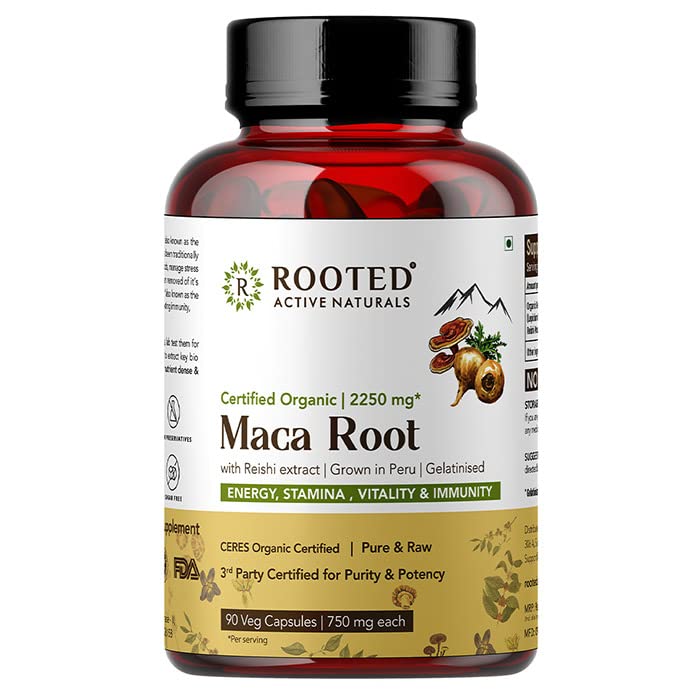 Rooted Actives Maca Root Powder With Reishi Mushroom Extract (90 Veg Caps 750 Mg) | Stamina Virility Hormonal Support (Maca Root With Reishi Mushroom)
