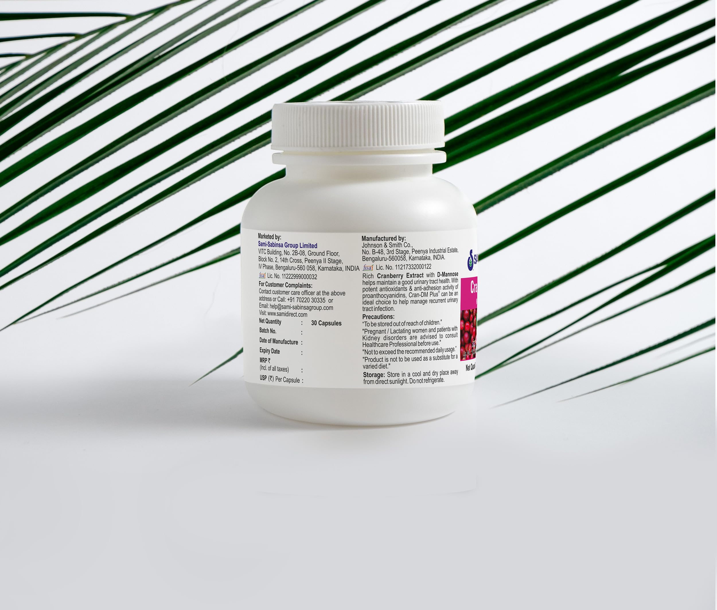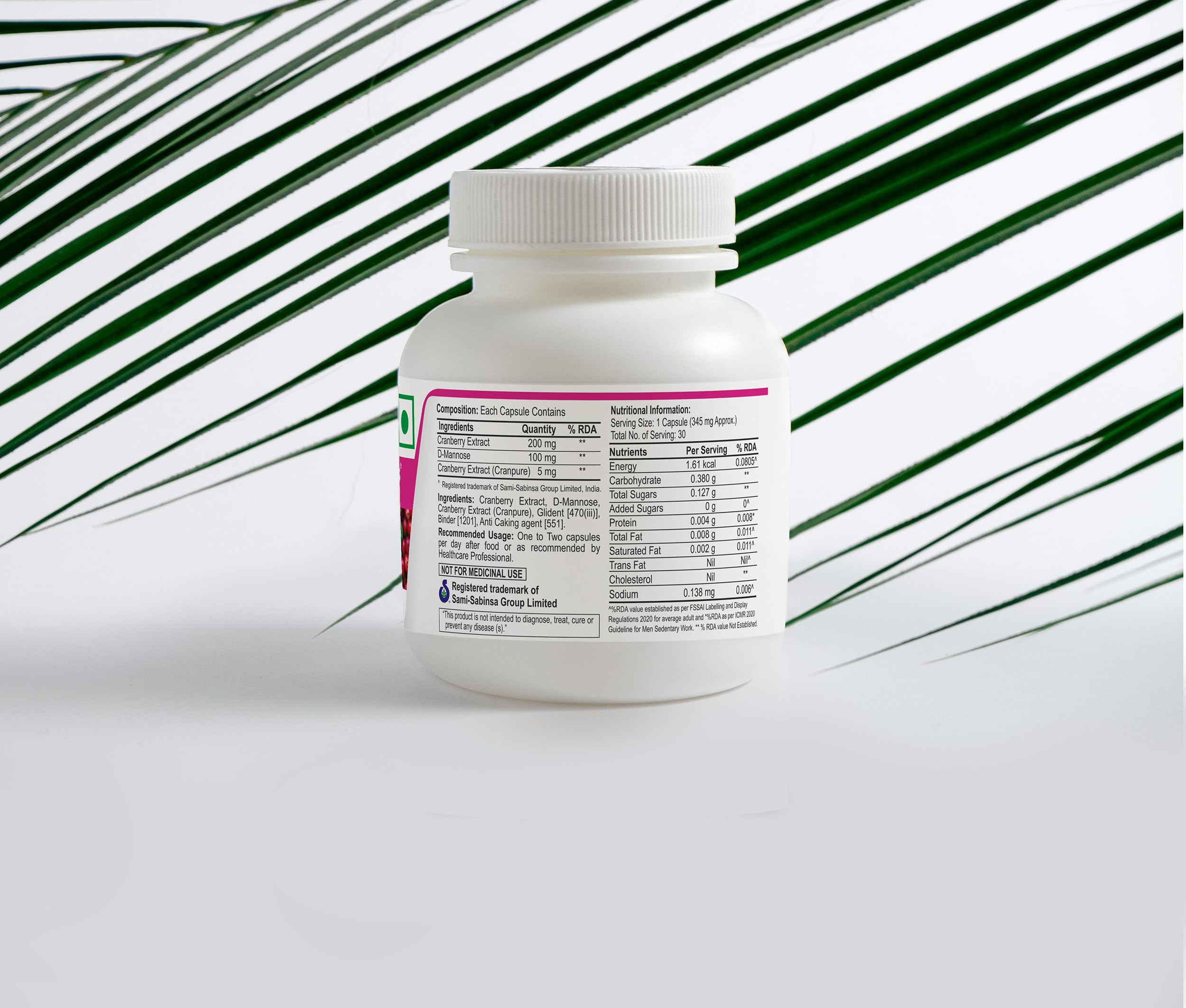 Cran-DM Plus is a formulation enriched with Cranberry fruit extract and D-Mannose that synergistically helps to maintain good Urinary Tract Health and reduce the use of antibiotics.