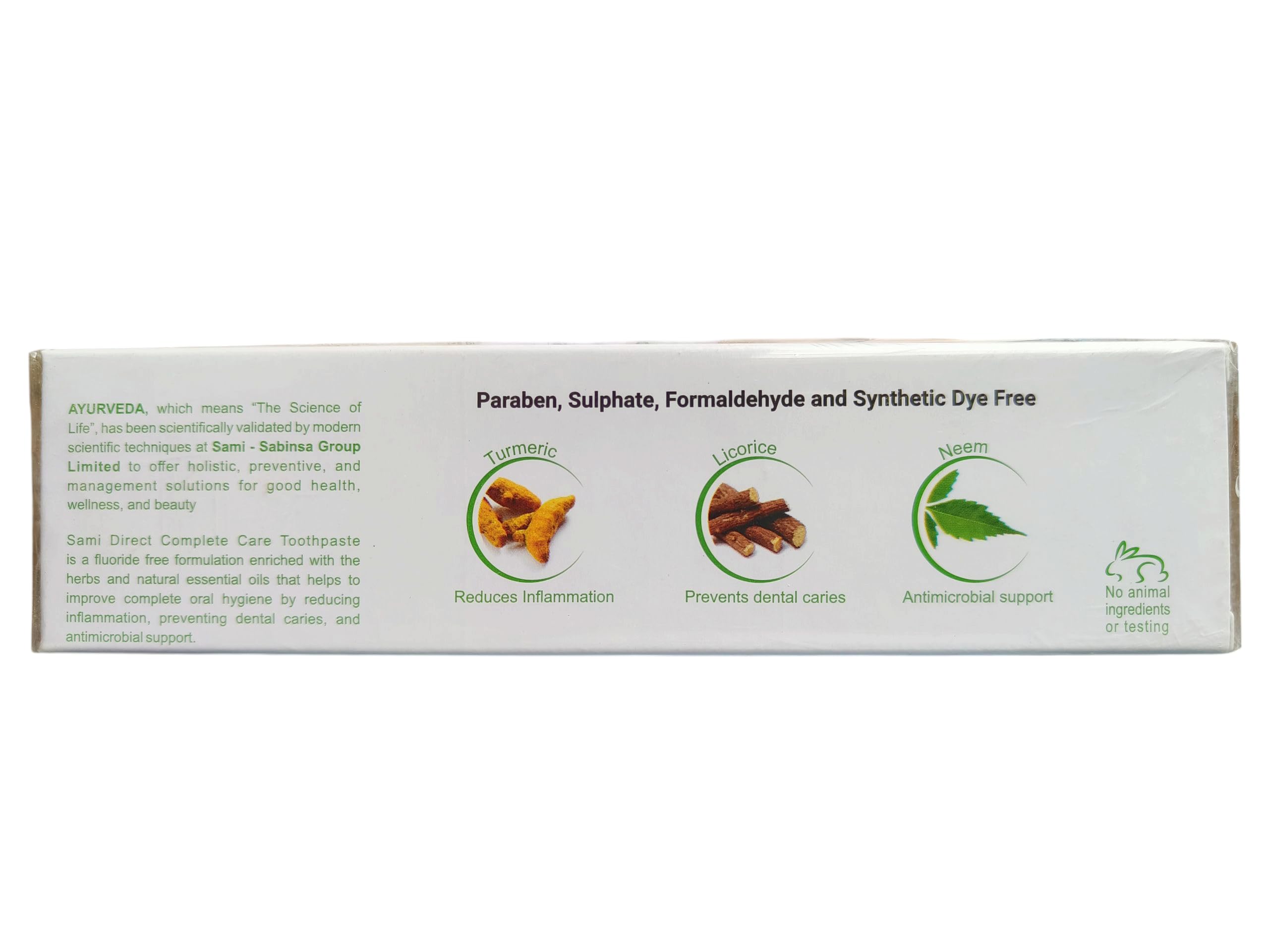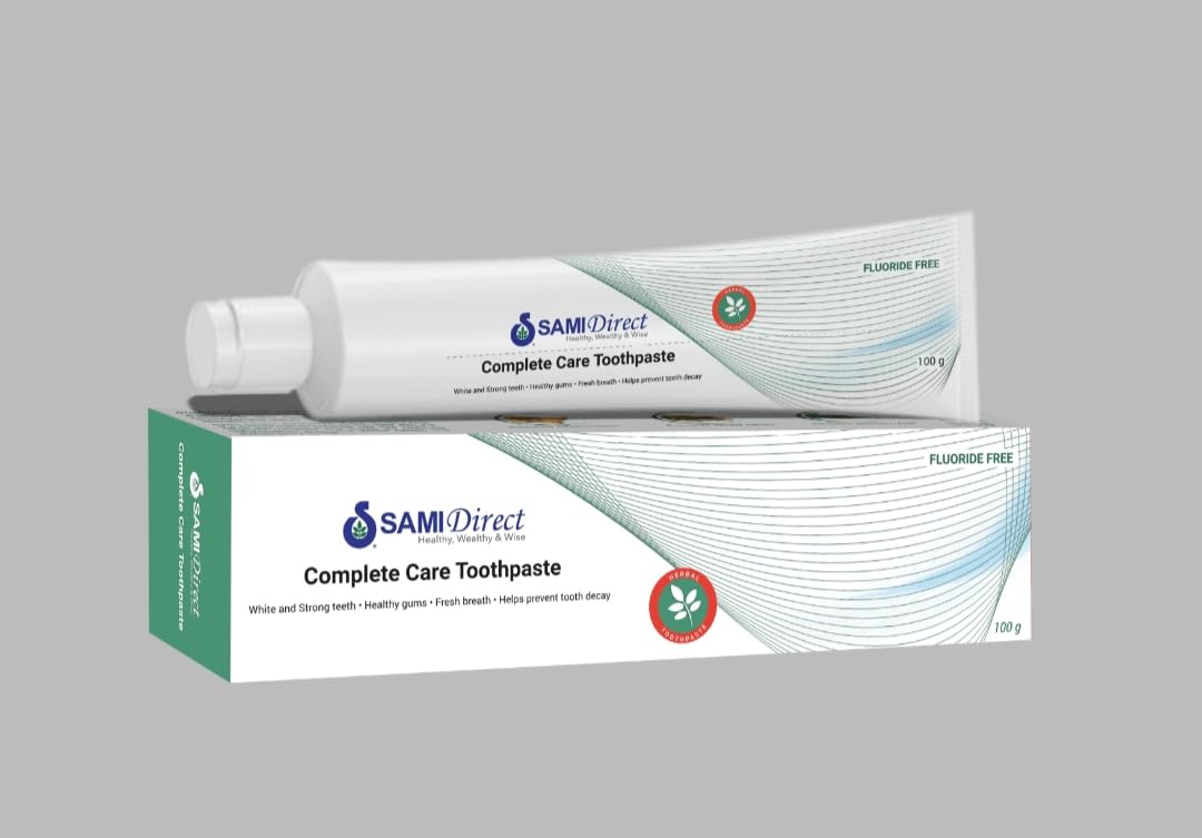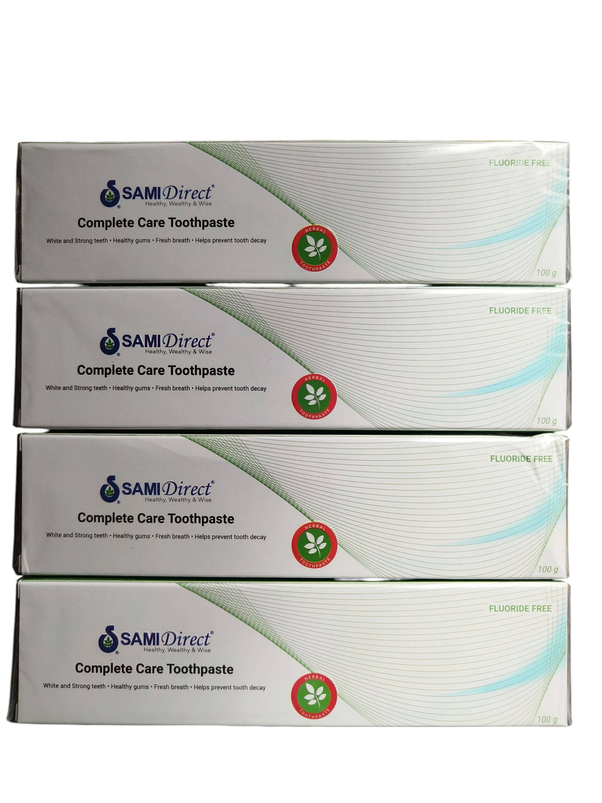 Discover comprehensive oral care with SAMI Direct Complete Care Toothpaste a fluoride-free herbal formulation designed for your daily dental needs. Each pack contains four 100g tubes offering excellent value for your family. This toothpaste is specially formulated to promote white and strong teeth maintain healthy gums ensure fresh breath and help prevent tooth decay. The herbal-based formula provides a natural approach to oral hygiene while being gentle on your teeth and gums. The convenient 100g size is perfect for both individual use and family sharing. Whether you're looking to maintain oral hygiene or enhance your smile this complete care toothpaste offers a holistic solution for your dental care routine. Experience the confidence that comes with thorough oral care and make this toothpaste an essential part of your daily regimen.