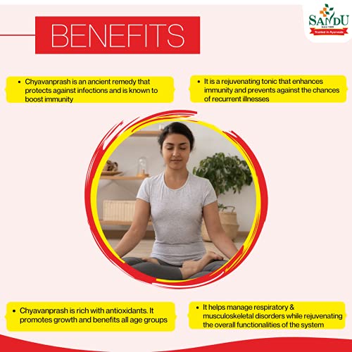 pChyavanprash is an ancient time tested remedy that provides complete protection against various infections and is an excellent immunity booster. Sandu Chyavanprash is a rejuvenating tonic for all age groups that improves the body's immunity against various diseases and reduces the chances of recurrent illnesses. It promotes mental and physical development in growing children. Sandu Chyavanprash is a rich source of vitamins essential minerals and antioxidants for elderly people. It prevents early ageing in young people. Sandu Chyavanprash keeps skin healthy./p pAbout Brand:-/p pSandu Pharmaceuticals also popularly called Sandu Ayurveda by people is one of the renowned brands when it comes to Ayurvedic health care products or medicines. Sandu Ayurveda Medicines are backed by a rich heritage and more than 120 years in the manufacture and marketing of Ayurvedic medicines./p pSandu is an ISO 9001:2000 certified group of companies. It is the best place to explore the world of Ayurveda ayurvedic medicines and to buy medicines online. Ayurveda has been a part of the great heritage of Indian science. During British rule Ayurveda was not considered an idealistic way of medicine and was looked down upon by modern classes but it was during these adverse times that a few inspired people staked their lives to restore glory to this magnificent legacy./p pThe name ââ¬ÅSanduââ¬Â leads in this roll call of honour. On 10th May 1899 Sandu Brothers chose to reinvent the manufacturing of Ayurvedic medicines. Their commitment to spread and educate about the goodness of Ayurveda and bringing health even to the poor are the ideals that have been the foundation of their success./p pThe name Sandu now stands as a benchmark of quality amongst doctors practitioners and common people alike./p