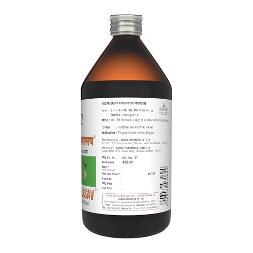 Size:450 ml Sandu Sitopalasav has excellent calming effect and is a nervine tonic. It is beneficial in stress and depression. Sandu Sitopalasav is very useful in mental fatigue. It is a potent anti-oxidant and keeps you energetic throughout day. Sandu Sitopalasav also improves appetite and digestion provides nutrition to tissues of central nervous system.