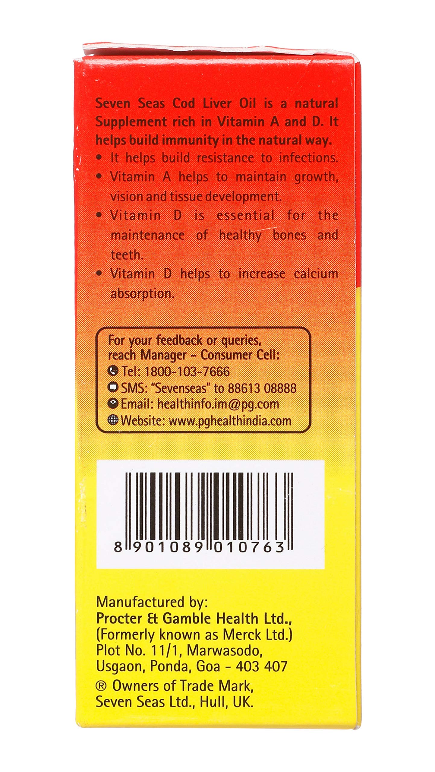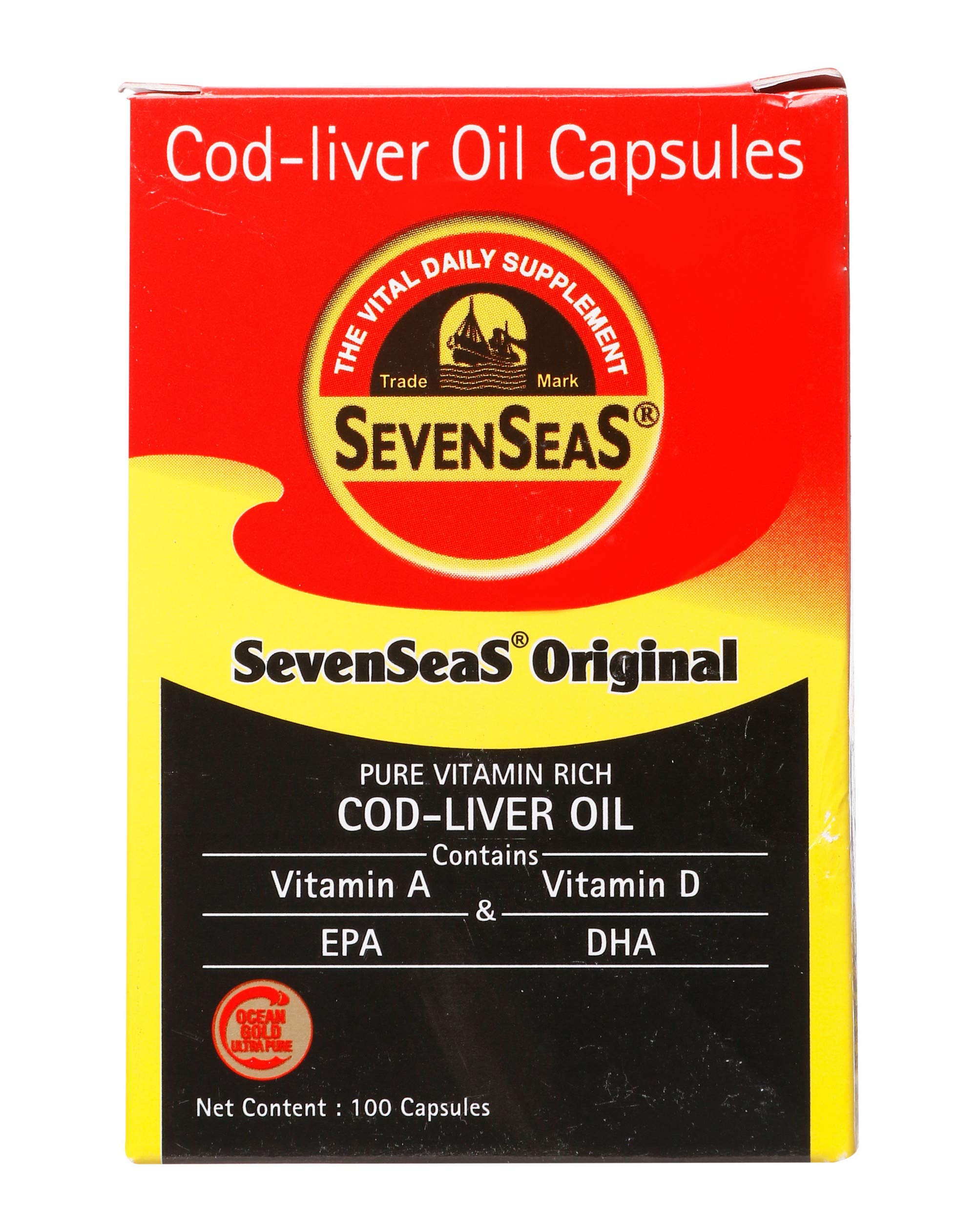 Seven seas cod liver oil capsules contains pure vitamin rich cod liver oil a natural source of omega 3 fatty acids (DHA and EPA) and vitamins A and D.