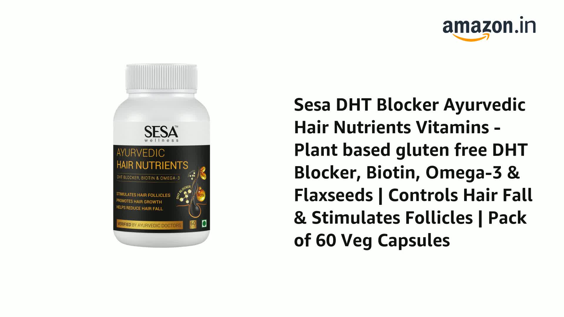 SESA Ayurvedic Hair Vitamins Biotin Tablets DHT Blocker 60 Capsules - Plant based Gluten free Nutrients With Omega-3 & Flaxseeds | Controls Hair Fall & Stimulates Follicles | 100% Veg