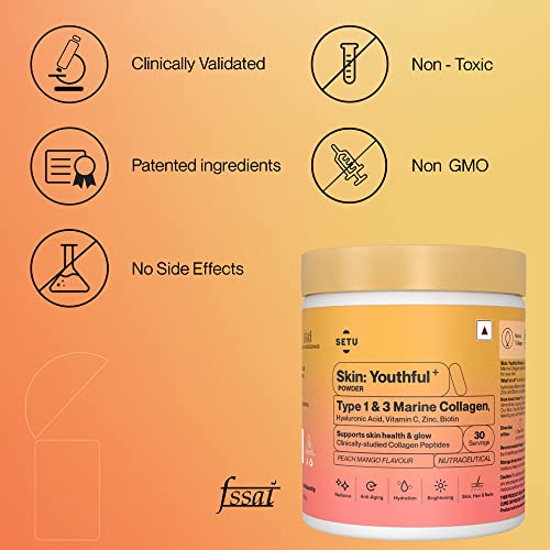 Setu Rose Water & Collagen Combo Pack | Rose Water Hydrating, Refreshing, 100 gm & Skin Youthful Marine Collagen Powder with N-Acetylglucosamine, Vit C, Zinc & Biotin, Peach Mango Flavour