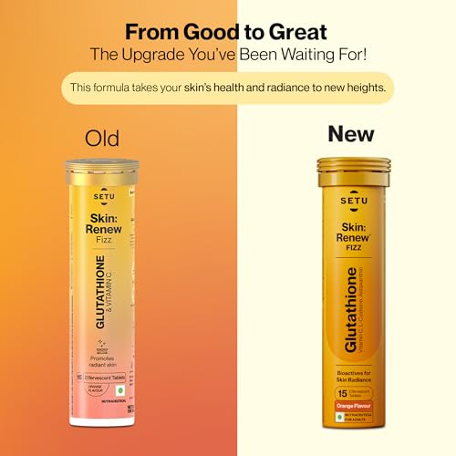 SETU Skin Renew Glutathione Tablets For Glowing Skin|30 Effervescent Tablets With 500 Mg L-Glutathione & Vitamin C|Antioxidant & Skin Glow Supplement|Orange (Pack Of 2),1 Count,15 Capsules