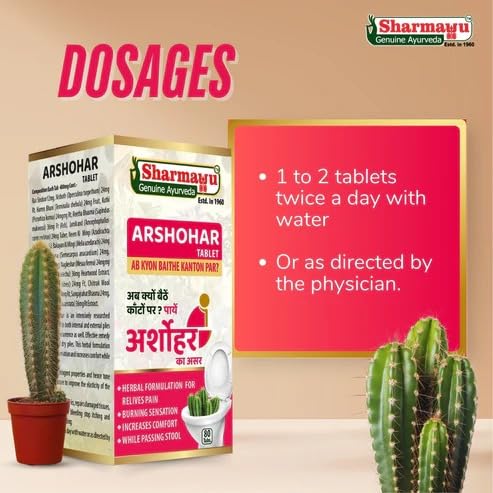Sharmayu Arshohar Tablet is a herbal dietary supplement prepared using ingredients known in Ayurveda. This product is developed by Sharmayu Ayurveda a trusted name in Ayurvedic preparations since 1890. Made from traditional herbs Arshohar is designed to be part of your wellness routine. It comes in an easy-to-use tablet form and is manufactured under hygienic conditions following good manufacturing practices. The ingredients used are selected for their historical use in Ayurveda. This supplement does not contain any artificial preservatives or chemicals. It is recommended to use as per the suggested dosage or as advised by a registered practitioner. This product is not intended to diagnose treat cure or prevent any disease. It is offered as a natural herbal supplement for daily wellness support.