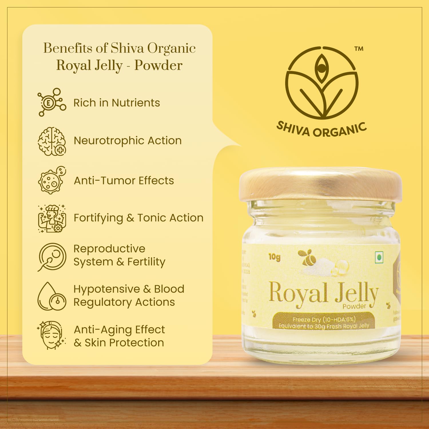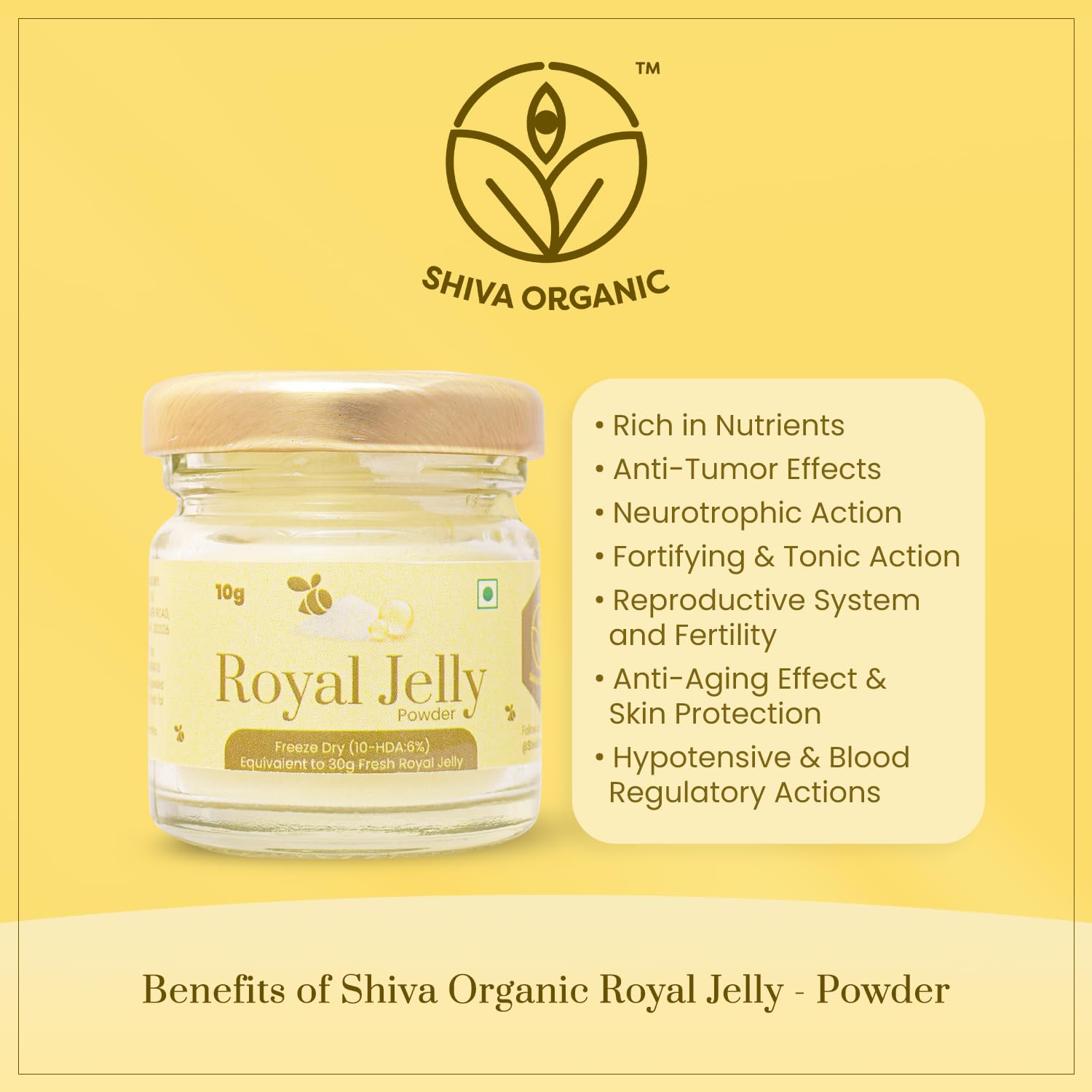 Shiva Organic Royal Jelly Powder 10g - Freeze Dry 10-HDA:6% I Immune Booster I High Minerals & Vitamins I Fertility Booster I Equivalent to 30g Fresh Royal Jelly
