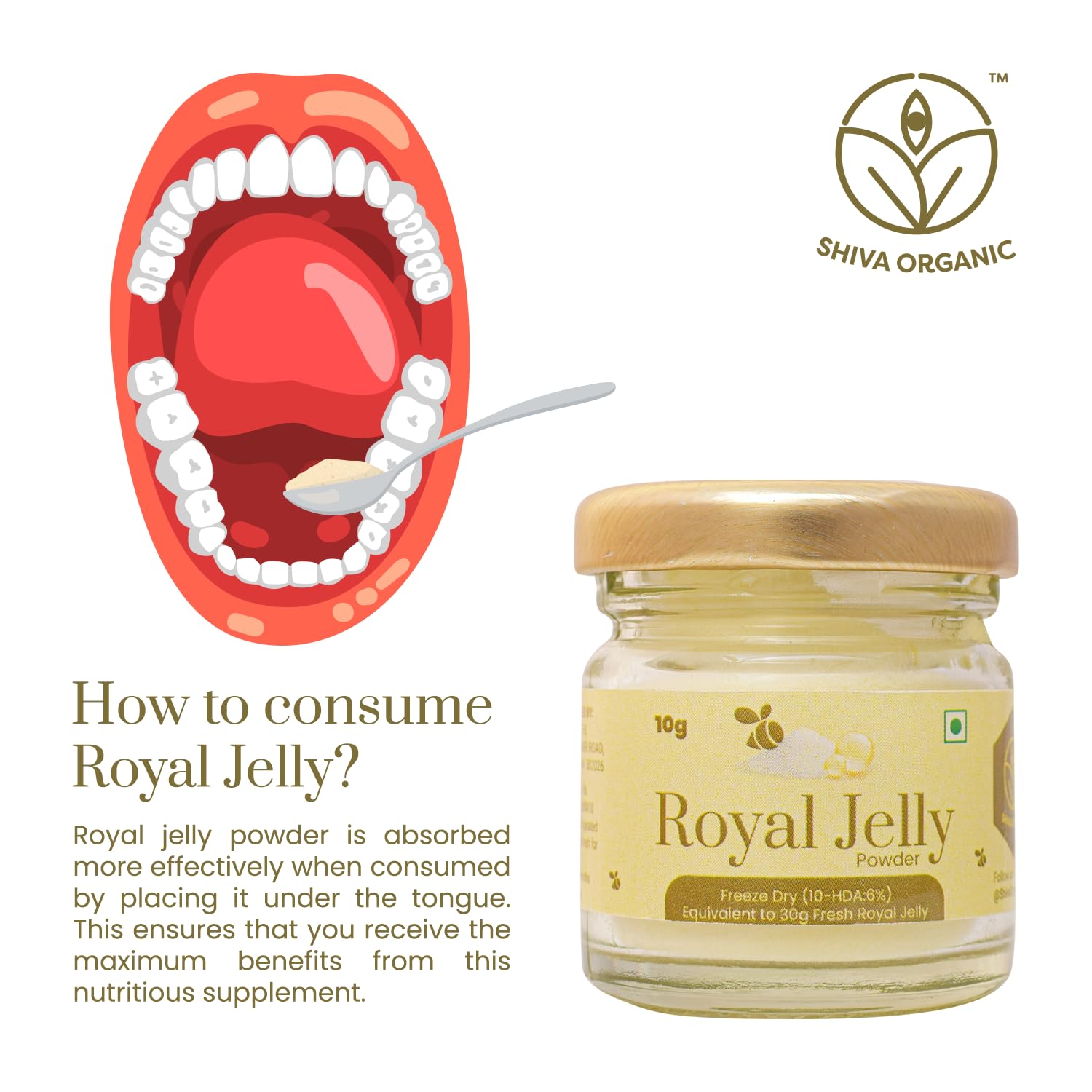 Shiva Organic Royal Jelly Powder 20g - Freeze Dry 10-HDA:6% I Immune Booster I High Minerals & Vitamins I Fertility Booster I Equivalent to 60g Fresh Royal Jelly
