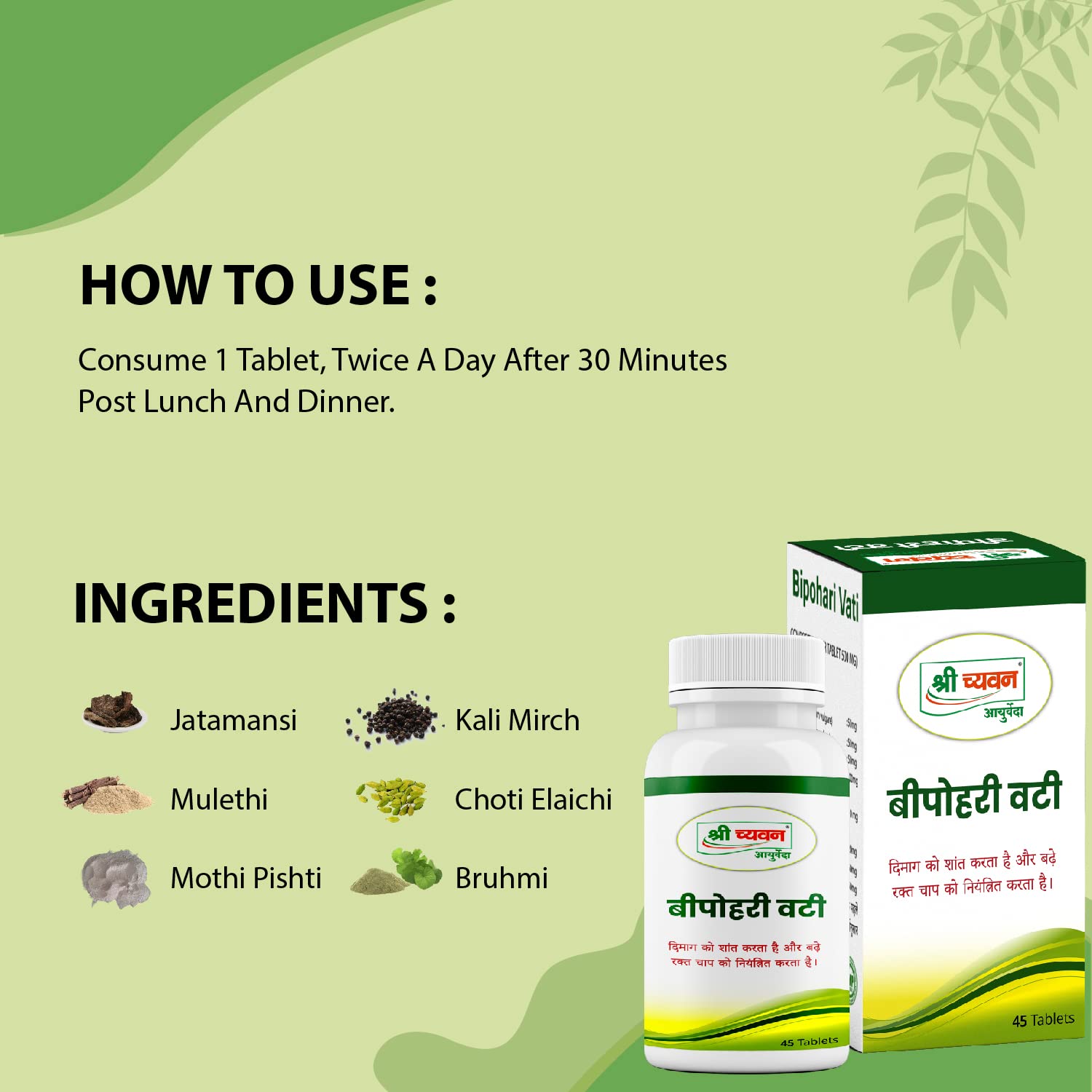 Shri Chyawan Ayurveda Bipo Hari Vati - 45 Tab |Control Blood Pressure | Reduce Stress | (Pack of 3)