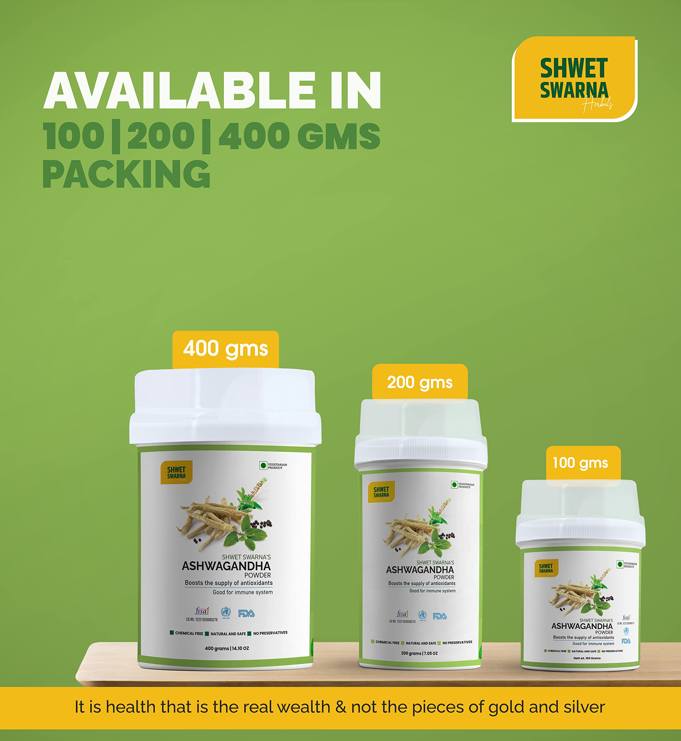 SHWET SWARNA 100% Natural & ASHWAGANDHA (Withania Somnifera) 100 Grams Powder