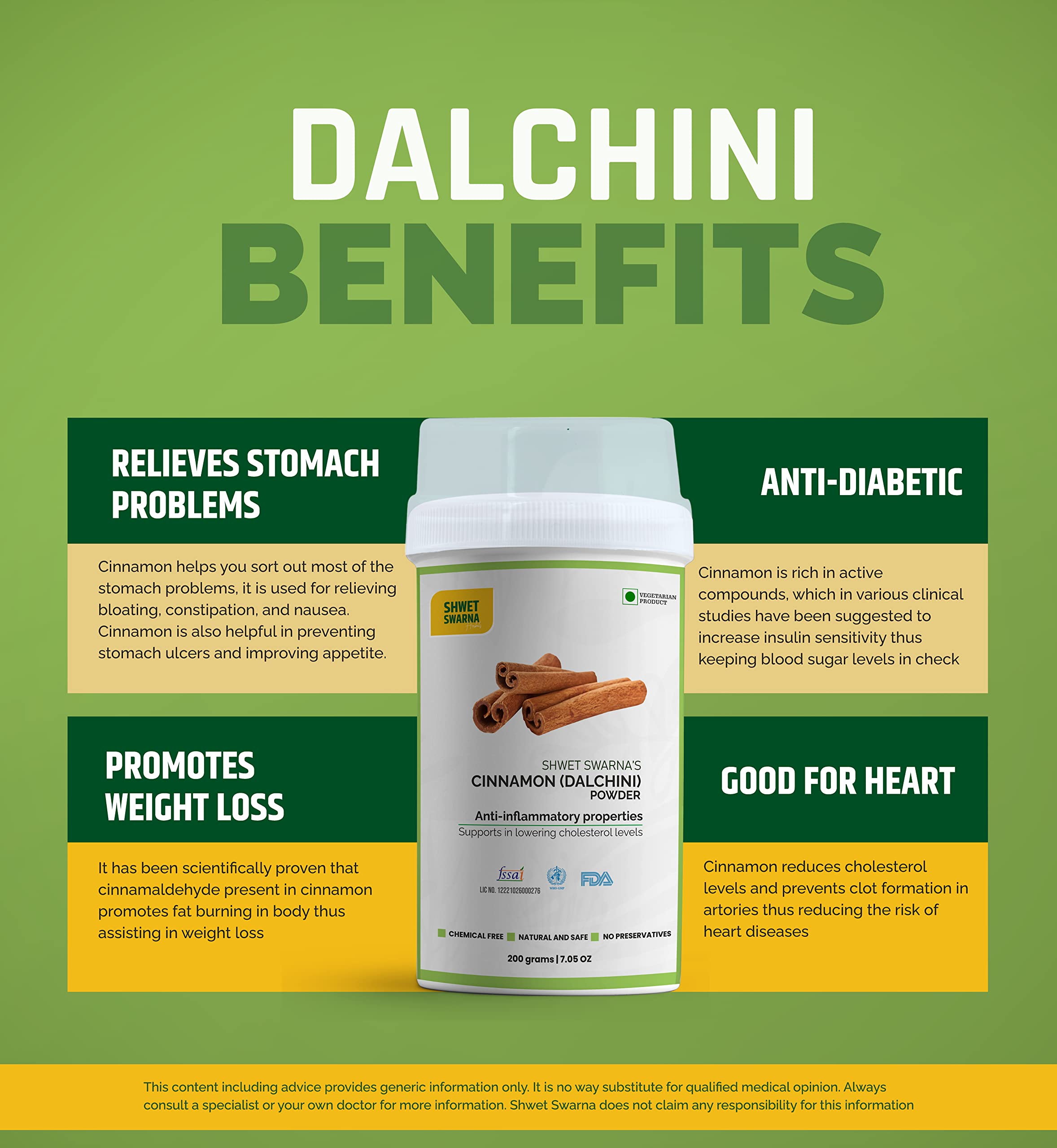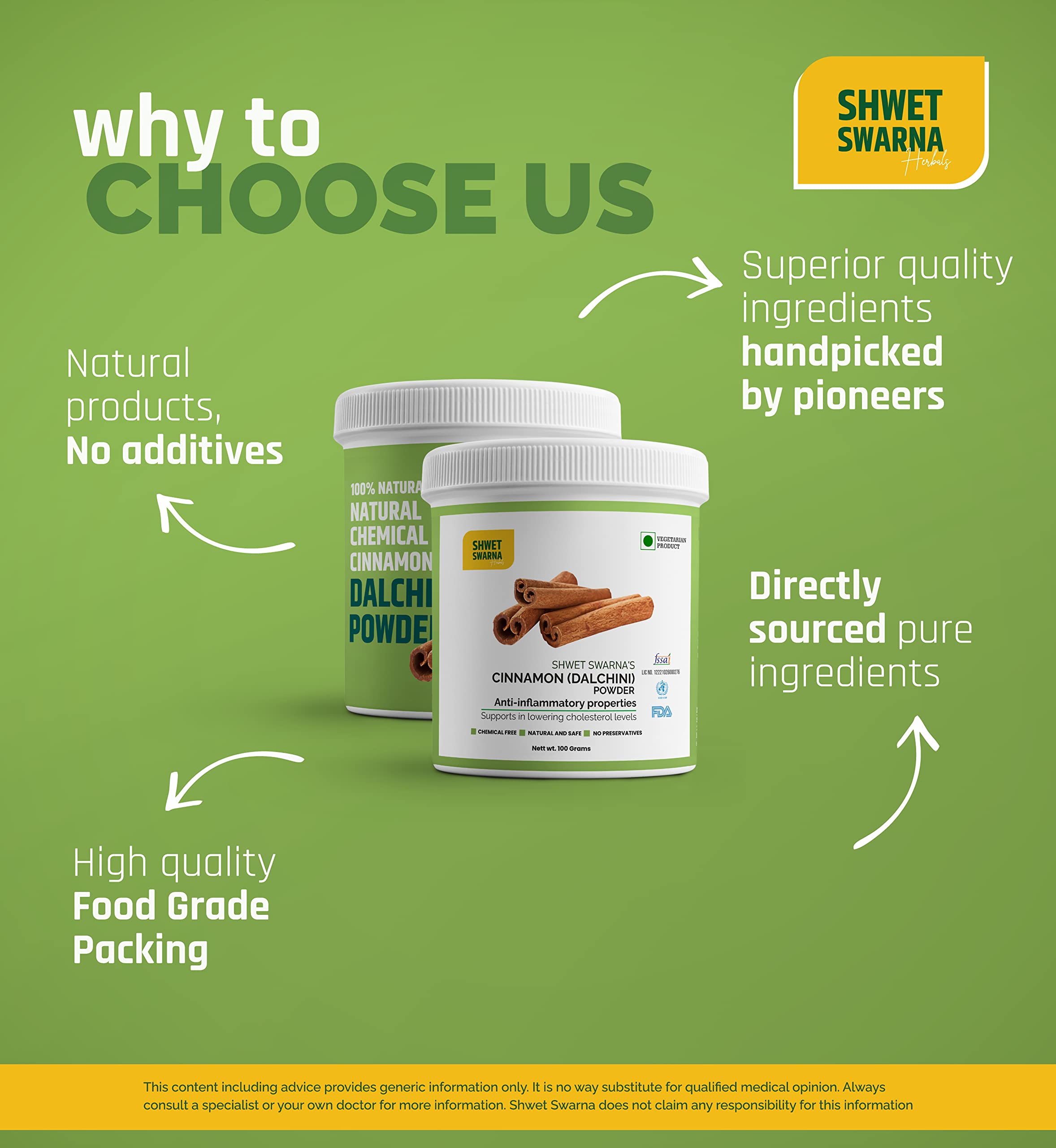 SHWET SWARNA DALCHINI Powder Cinnamon Sticks Powder Add Aroma To Dishes Tea Toast Soup Etc Rich In Fibre And manganese vitamins and minerals Fights Infection100 grm