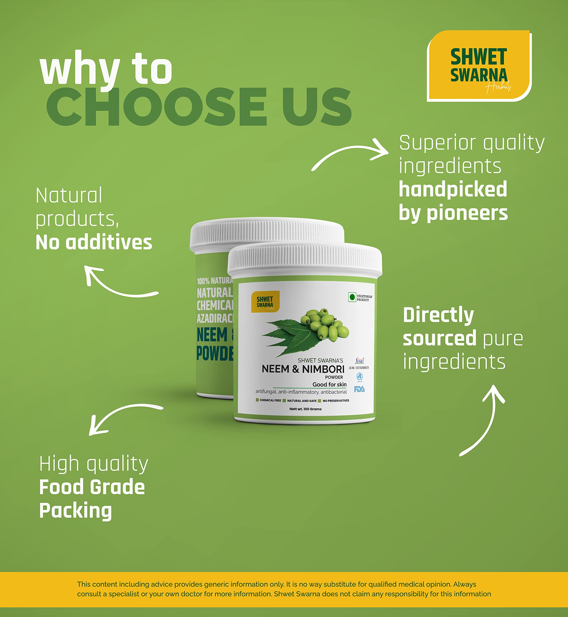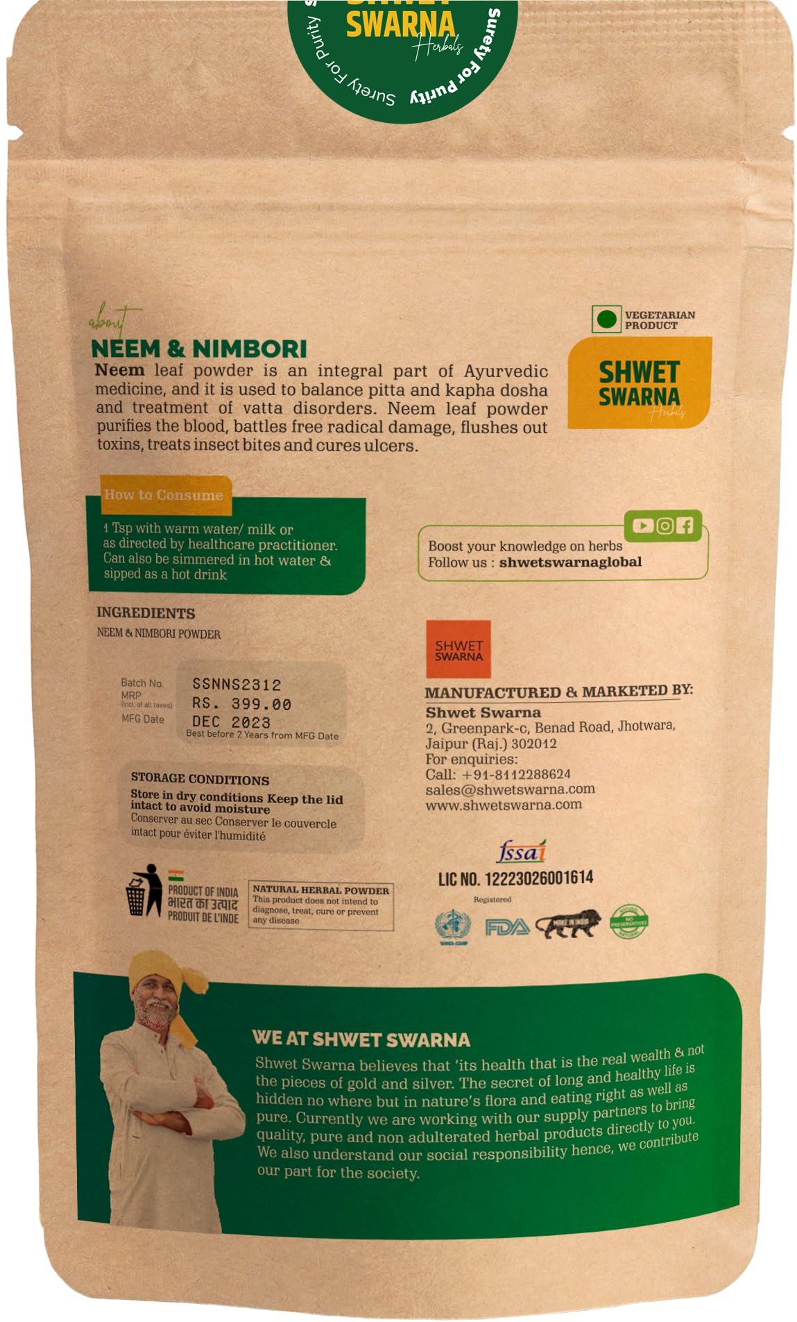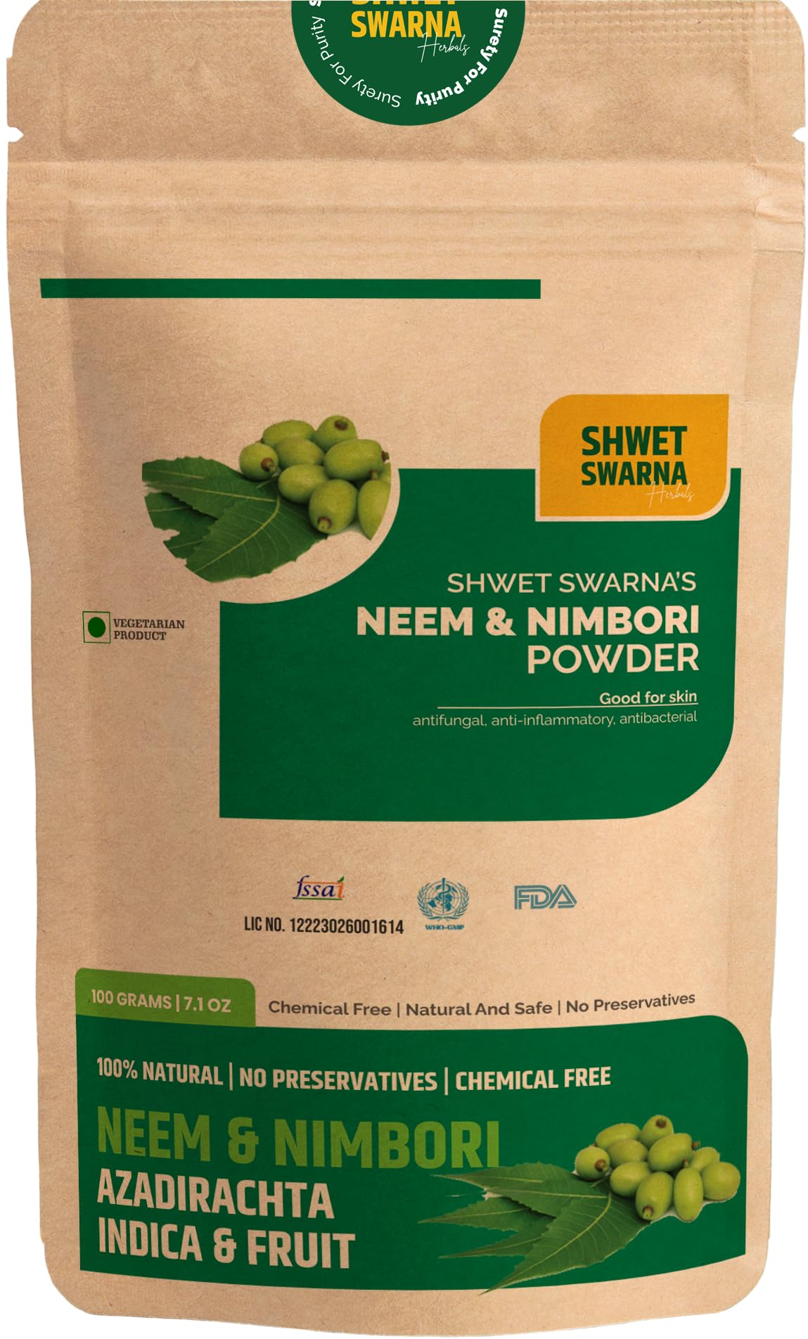 Shwet Swarna NEEM & NIMBORI/natural Azadirachta indica fruit Powder 100 Grams Neem Powder.