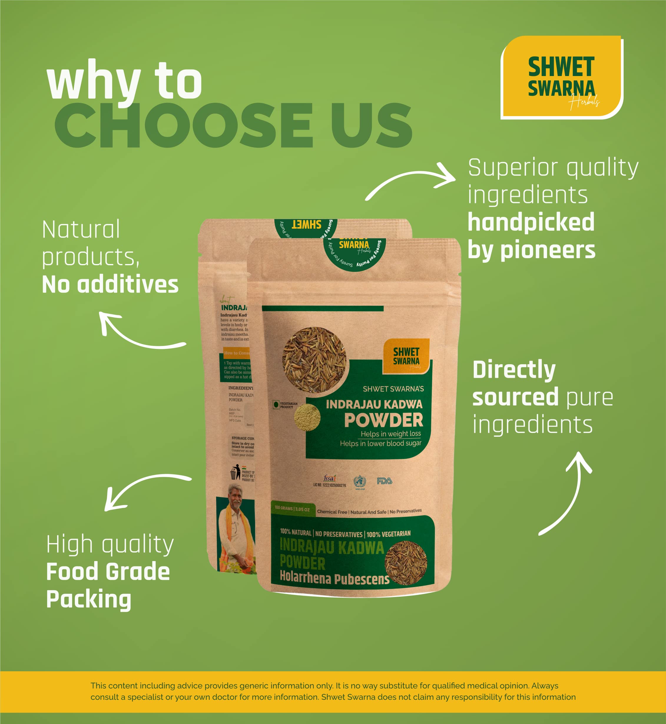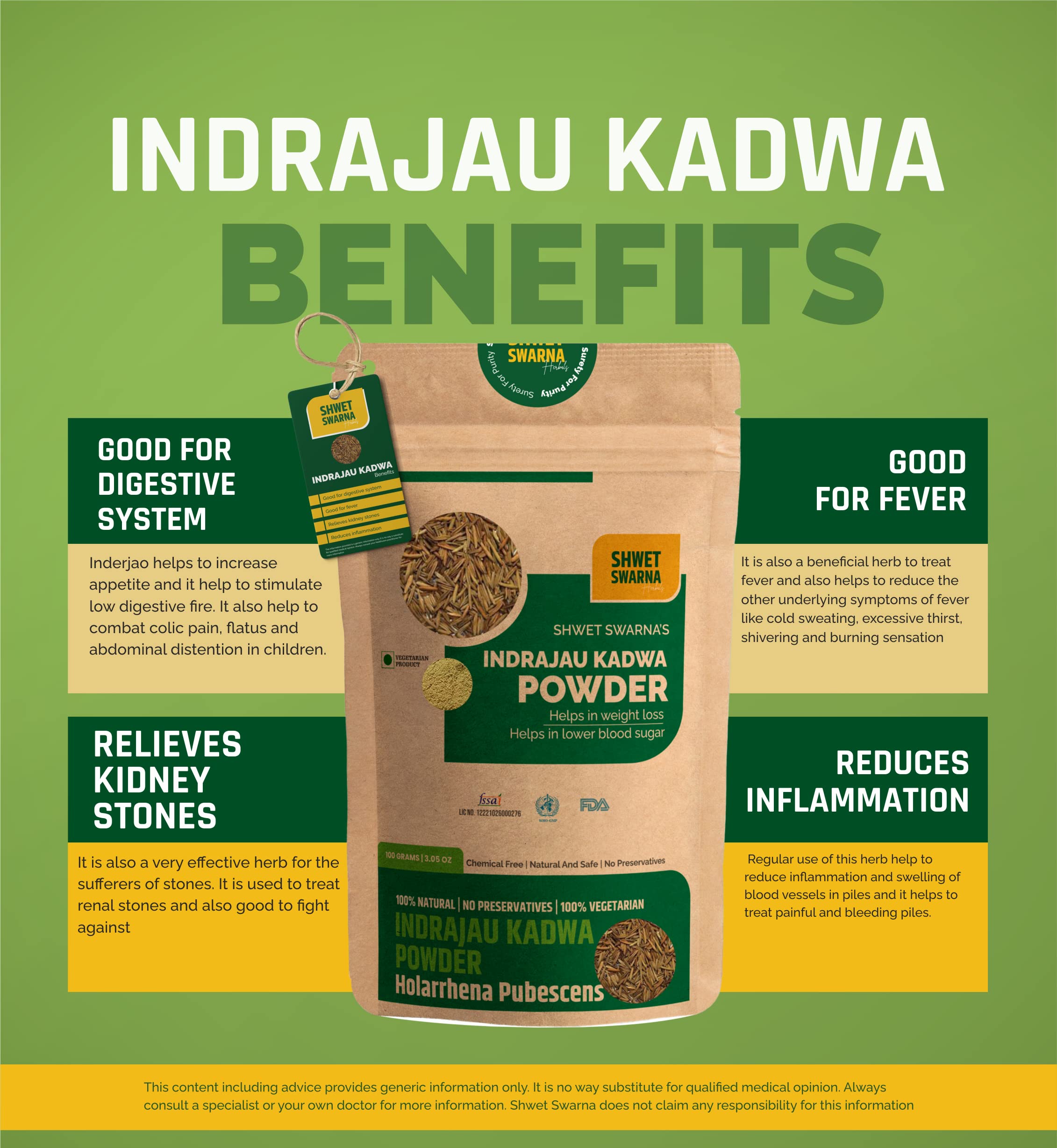 SHWET SWARNA Pure Natural Indrajau Powder Herbal Ayurvedic Health Supplement Product 200GM