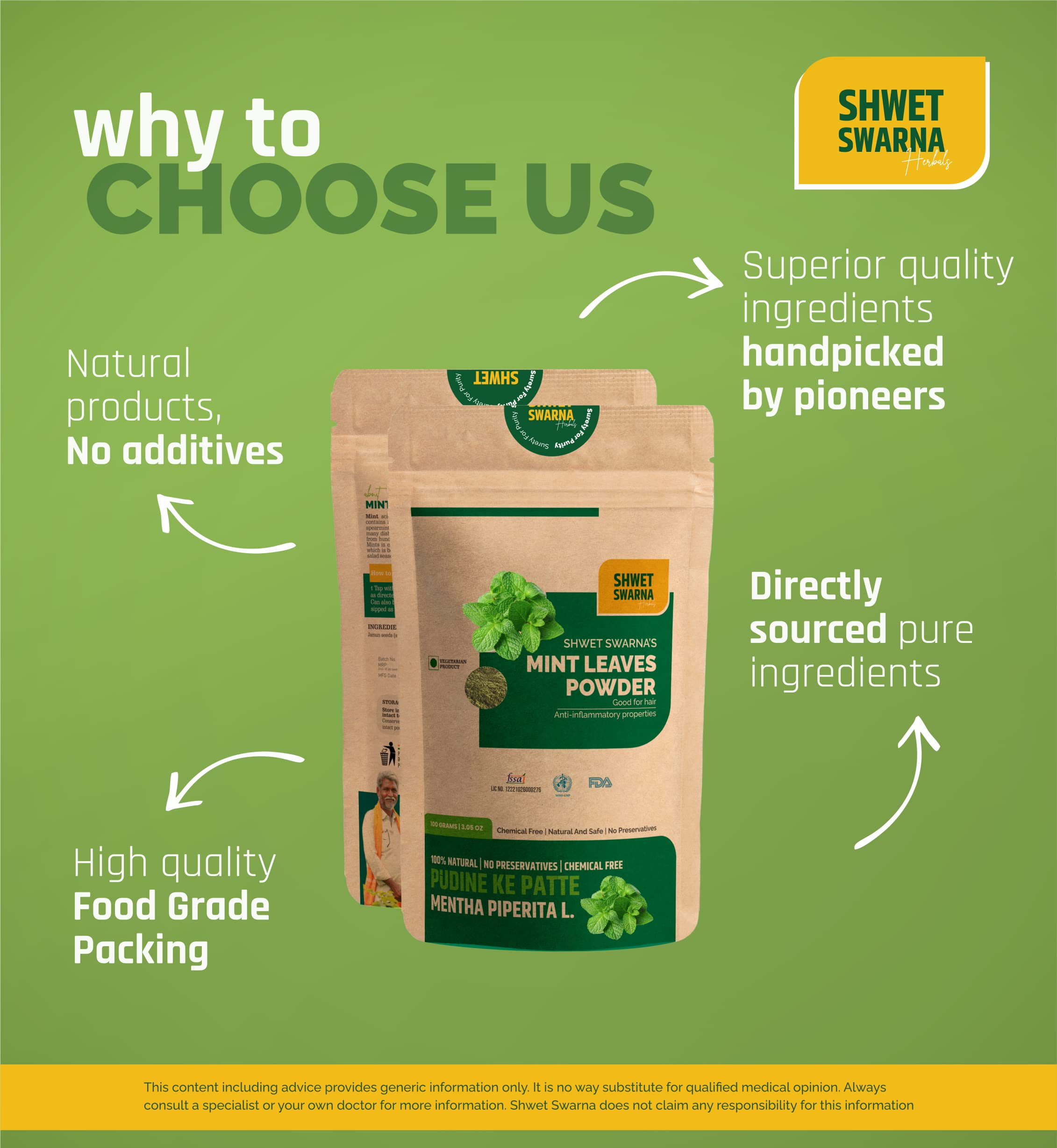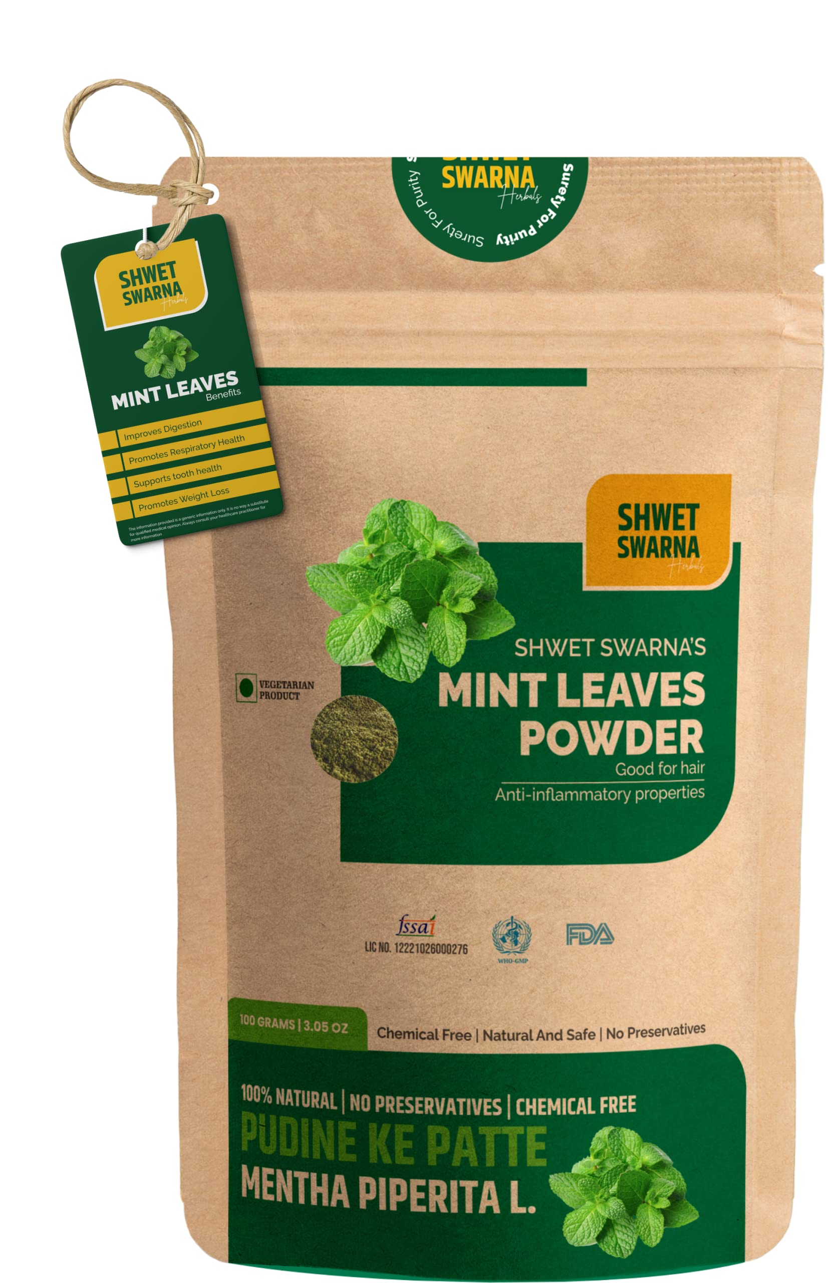 SHWET SWARNA Pure Natural Mint Leaves Powder/Podhina Powder Herbal Ayurvedic Health Supplement Product 100GM