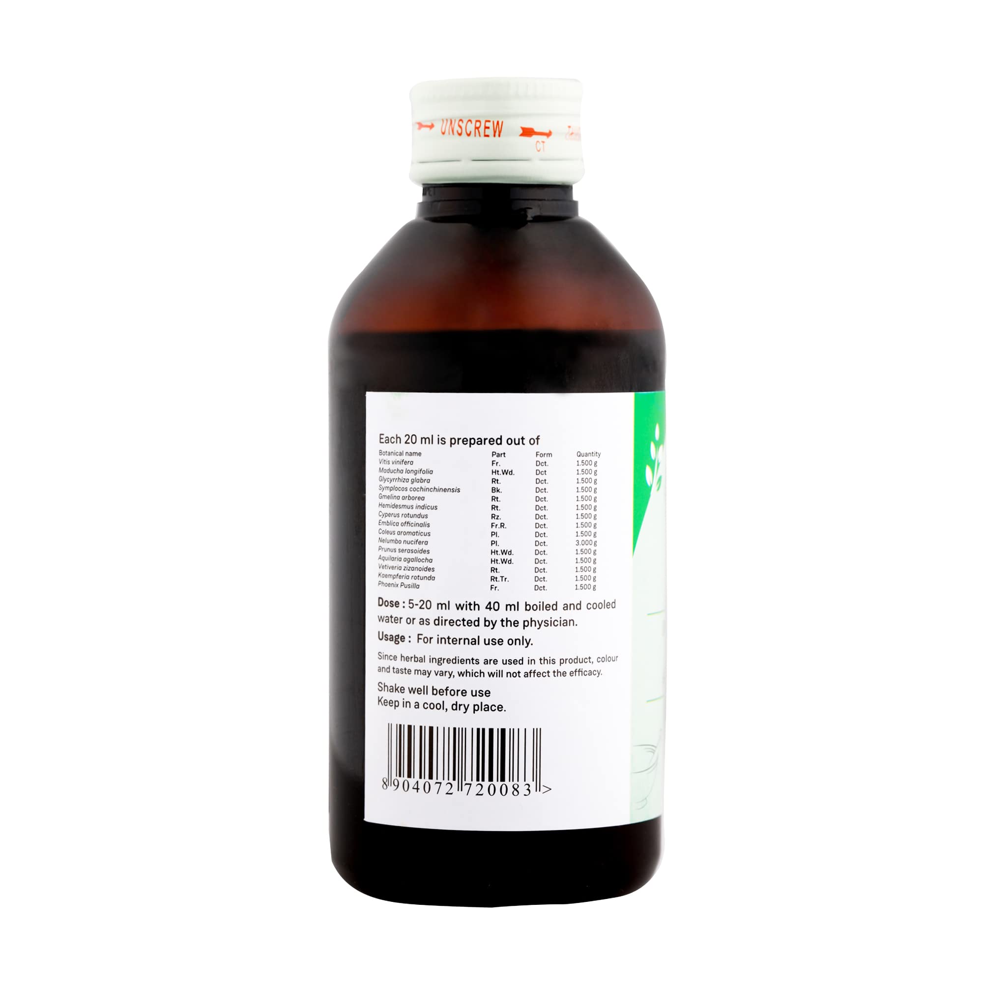 Vata-Pitta derangement in the body is characterized by dry and debilitating heat. The body loses all vitality and vigor. Drakshadi kashayam tablet is a soothing herbal combination that brings about Vata-pitta balance in the body. This is a formulation found mentioned in the context of Jwara chikitsa in Ashtanga Hrdaya. Deeply cooling Pittasamana combination of Draksha (Vitis vinifera) Yashtimadhu (Glycirrhiza glabra) Madhuka (Madhuca longifolia) Sariba (Hemidesmus indica) Mustha (Cyperus rotundus) Amalaki (Embilica officinalis) Padmaka (Prunus cerasoides) Chandana (Santalum alba) Useera (Vetiveria zizanoides) Lodhra (Symploccos racemosa) Mrunala (Nelumbo nucifera) etc.