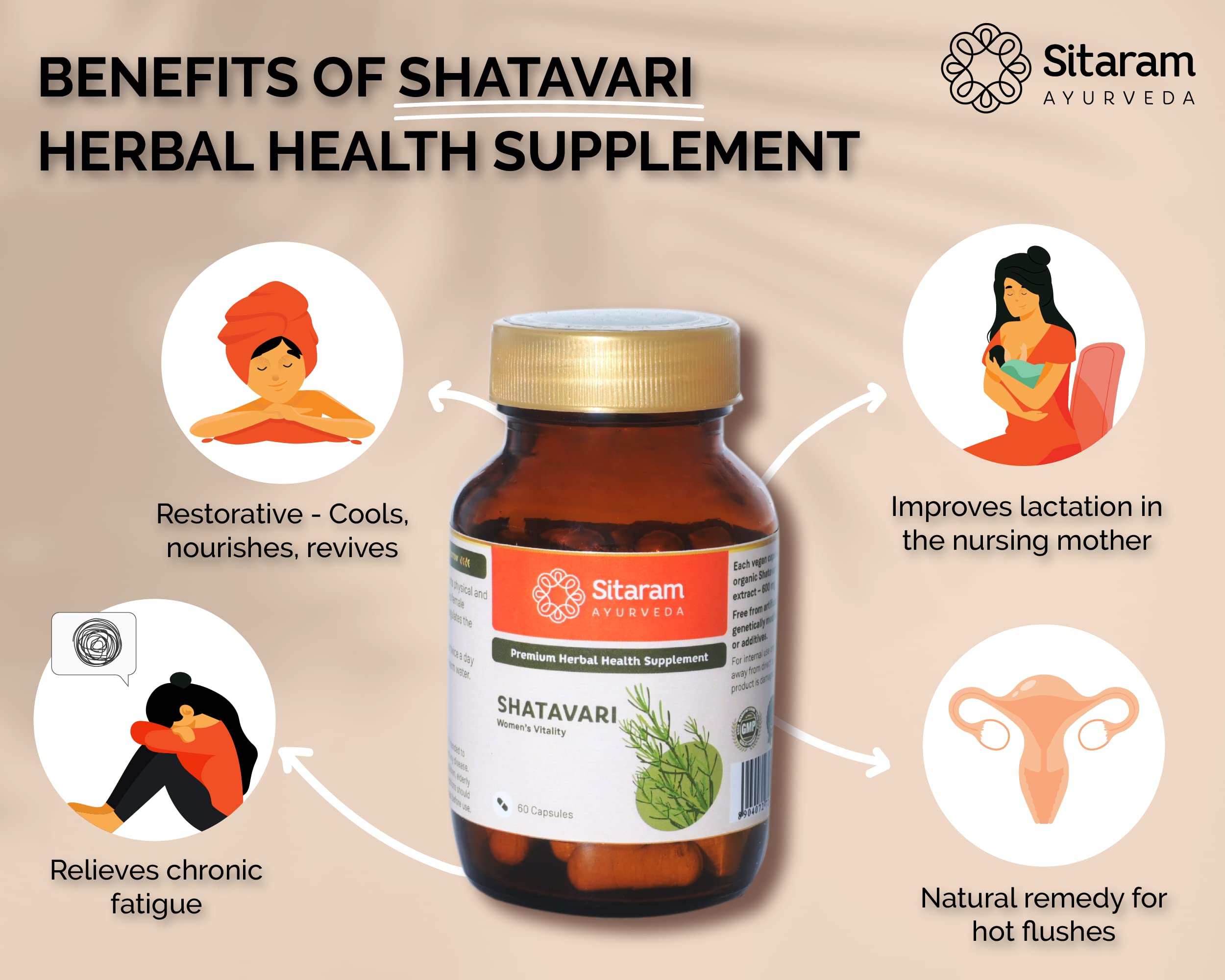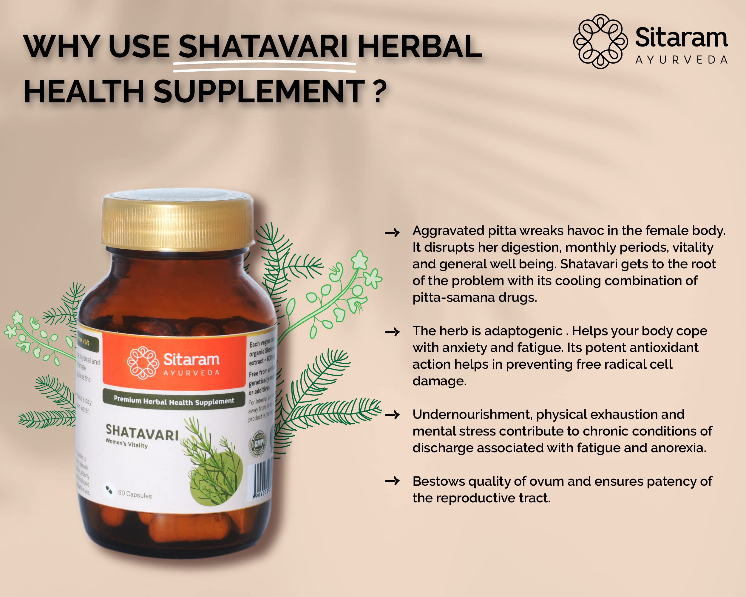 Sitaram Ayurveda Shatavari Capsules 60 Nos | More Potent 600 MG Extract (other brands - 250 MG) | Promotes lactation |Women wellness