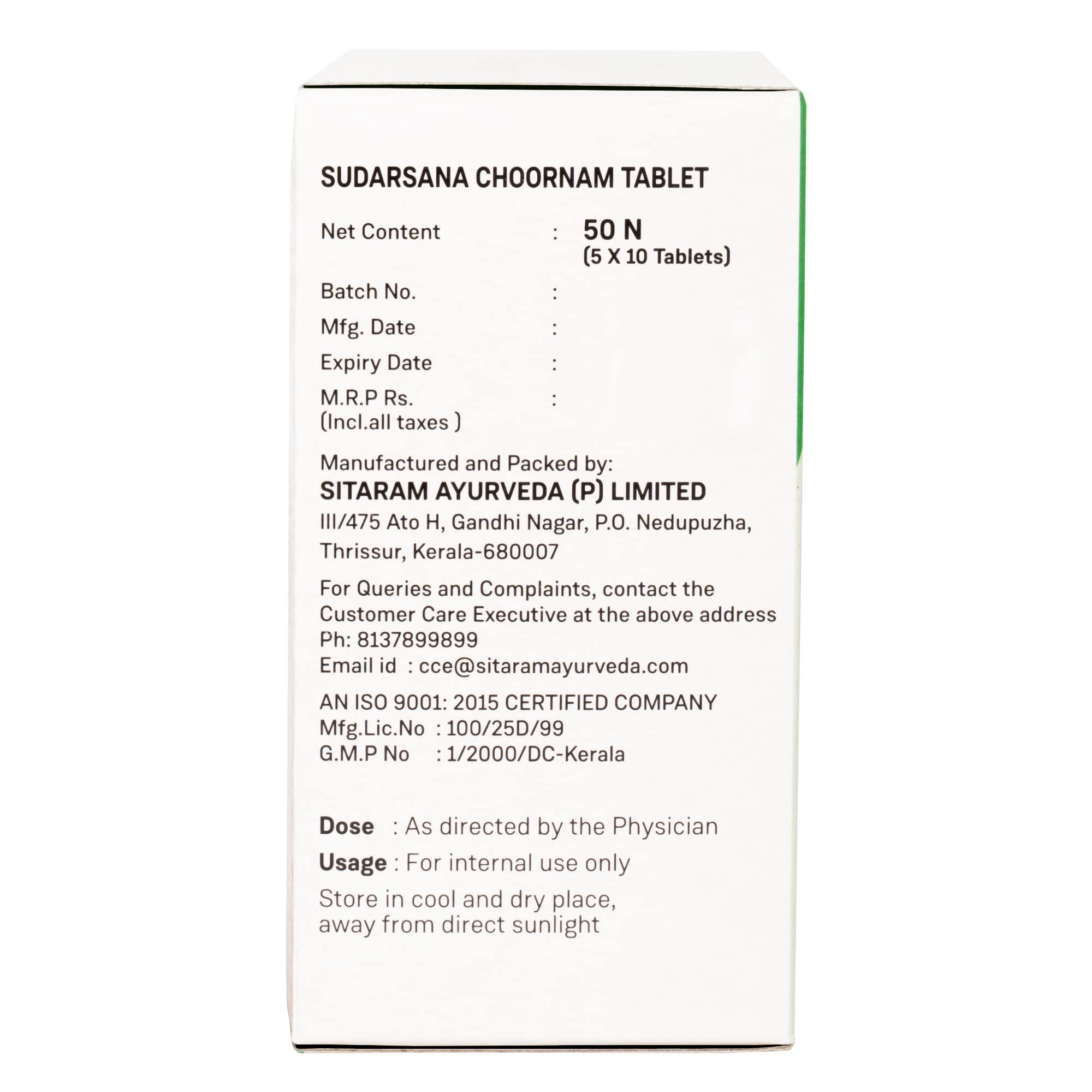 Sitaram Ayurveda Sudarsana Choornam Tablet | Kerala Ayurvedic Sudarshan Tablets | Sudarshan Vati (50 Nos)