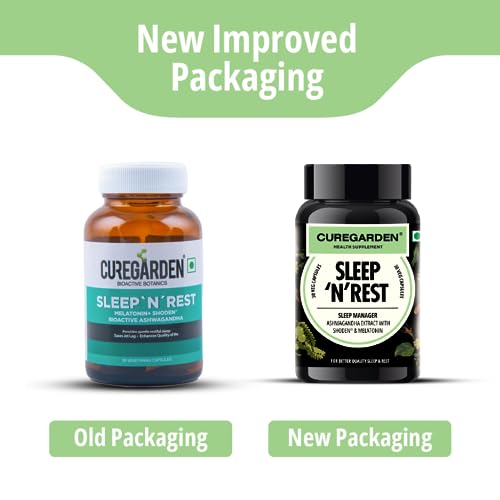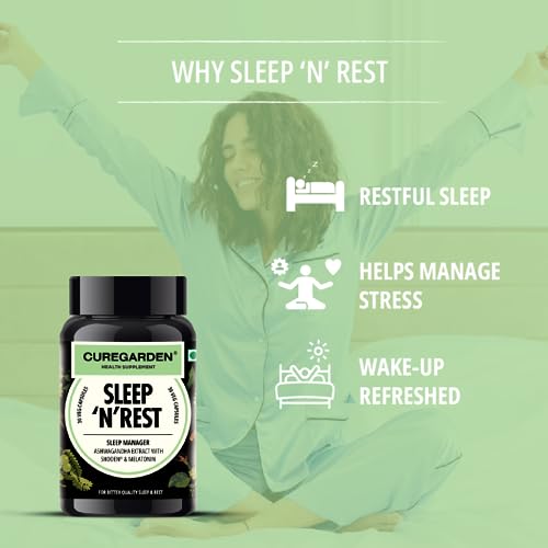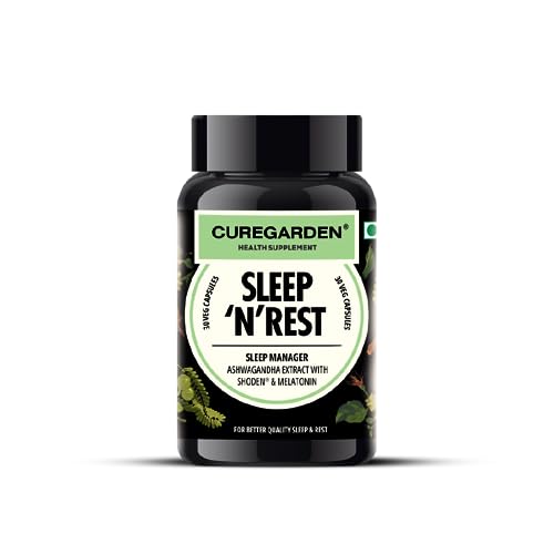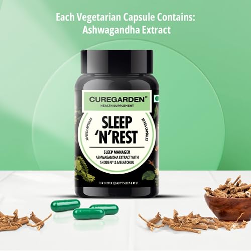 Curegarden Ashwagandha 500mg with melatonin 5mg|30 Vegetarian Capsules| SLEEP 'N' REST| Natural Stress Relief and wellness Herbal Supplements| Adults