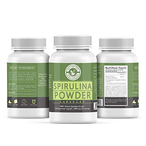 HOLY NATURAL'S SPIRULINA POWDER VEGETARIAN CAPSULES A natural source of essential Phytonutrients Proteins & Amino acids. Increased energy & vitality brain support immune system support eye health. High antioxidant for healthy digestive system. Get natural energy boost Take 2 capsules daily with meal or 8 oz of water or as directed by healthcare practitioner. 100% pure & natural product.