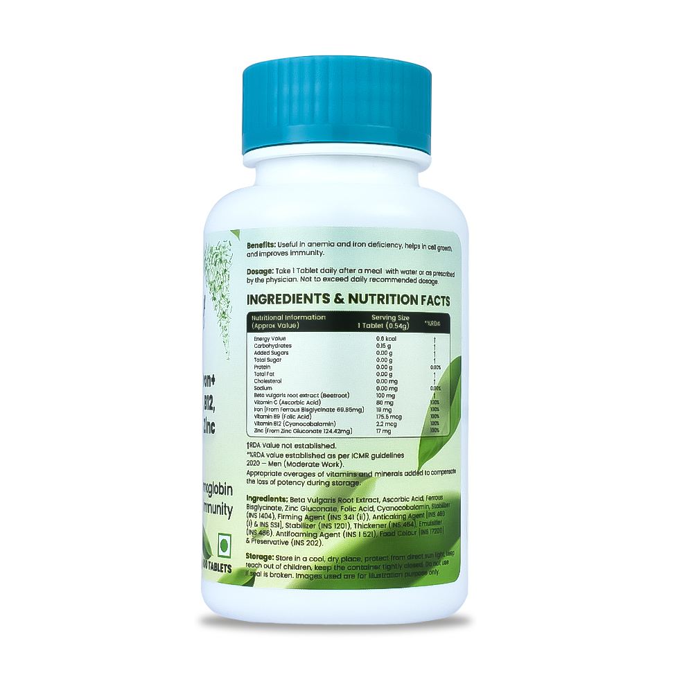 Sprowt Chelated Iron + Vitamin C, B12, Folic Acid & Zinc Veg Tabs. - Haemoglobin Deficiency: Sprowt Chelated Iron + Vitamin C, B12, Folic Acid and zinc Tabs. haemoglobin production, aiding in the of haemoglobin deficiency. Weak System: These Tabs. contain Vitamin C, known for its -ing properties, enhancing your body's defence mechanisms. Anaemia Management: Sprowt's chelated iron resses anaemia by increasing red cell production and improving oxygen transport throughout the body. Iron Deficiency: Specifically designed to combat iron deficiency, the chelated iron in these Tabs. ensures optimal absorption, rectifying iron imbalances. Comprehensive Support: The inclusion of Vitamin B12, Folic Acid, and Zinc complements iron absorption, providing a holistic approach to combatting nutritional deficiencies for overall health and vitality.