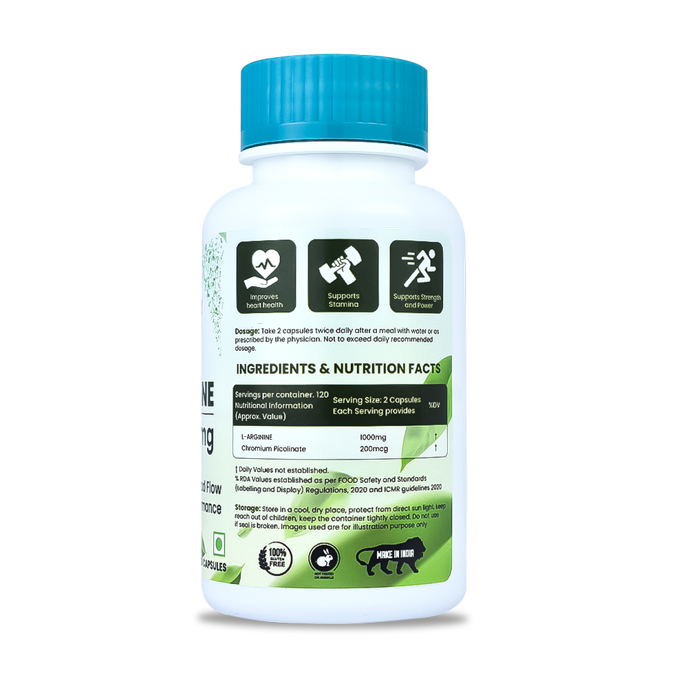 Sprowt L-Arginine 1000mg Veg Caps. - Supports health: Sprowt L-Arginine 1000mg Veg Caps. can the of by promoting healthy vessel function, helg to lower , and improving overall health. Promotes better circulation: These Caps. enhance flow by aiding in the production of nitric oxide, which relaxes vessels, improving oxygen and nutrient dey to muscles and organs. Supports strength and power: L-Arginine is essential for protein synthesis, making it beneficial for muscle growth and physical performance, contributing to increased strength and power. Enhances endurance: By improving flow and nutrient dey, these Caps. can endurance levels during physical activities. Overall wellness: L-Arginine o in function and wound healing, promoting general health and well-being.