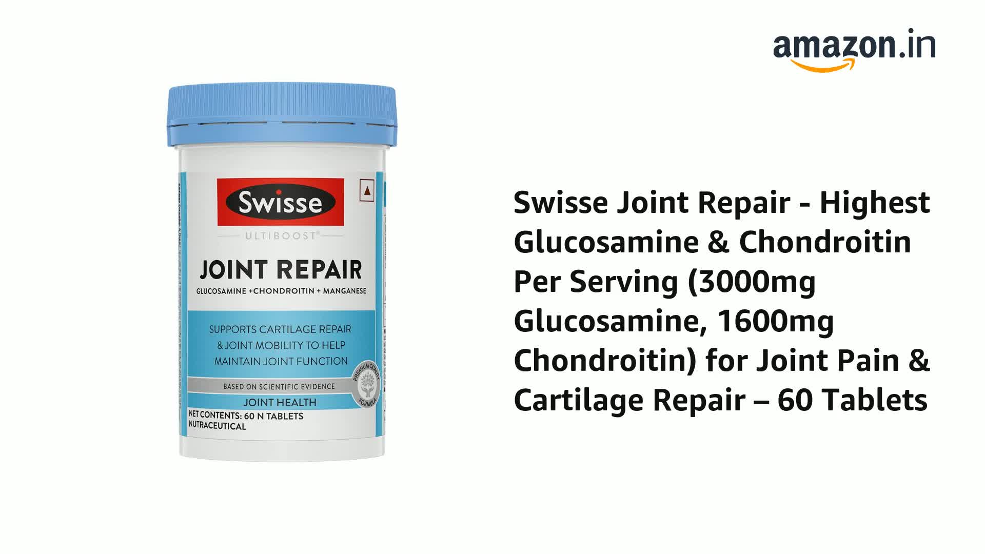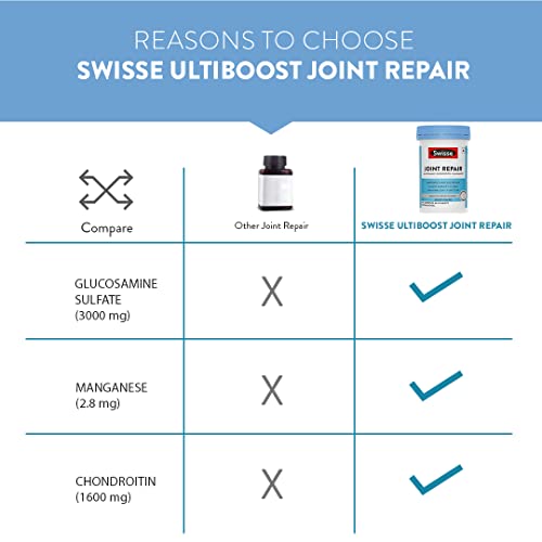 Swisse Joint Repair - Highest Glucosamine & Chondroitin Per Serving (3000mg Glucosamine, 1600mg Chondroitin) for Joint Pain & Cartilage Repair – 60 Tablets