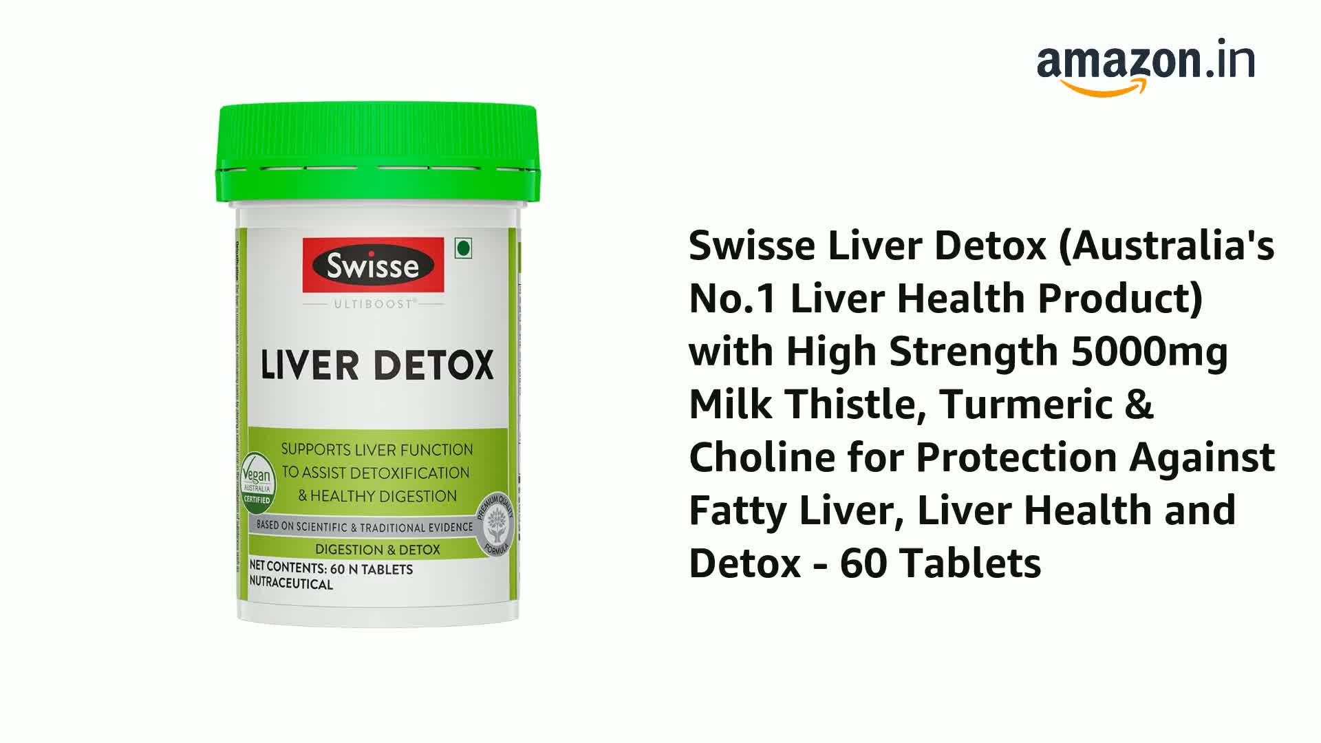 Swisse Ultiboost Liver Detox Supplement with High Strength Milk Thistle (Silymarin Marianum) - 5000 mg, Turmeric - 3000 mg & Choline - 82.5 mg for Complete Liver Support, Cleansing and Detox - 60 Tablets (Vegan Supplement)