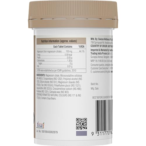 Swisse Magnesium For Muscle Recovery, Sound Sleep & Stress Relief - Australia's No. 1 Magnesium Supplement, Manufactured In Australia - Supports Relaxing, Calming & Muscle Regenerative Sleep - 60 Tablets (1 Tablet Per Serving)