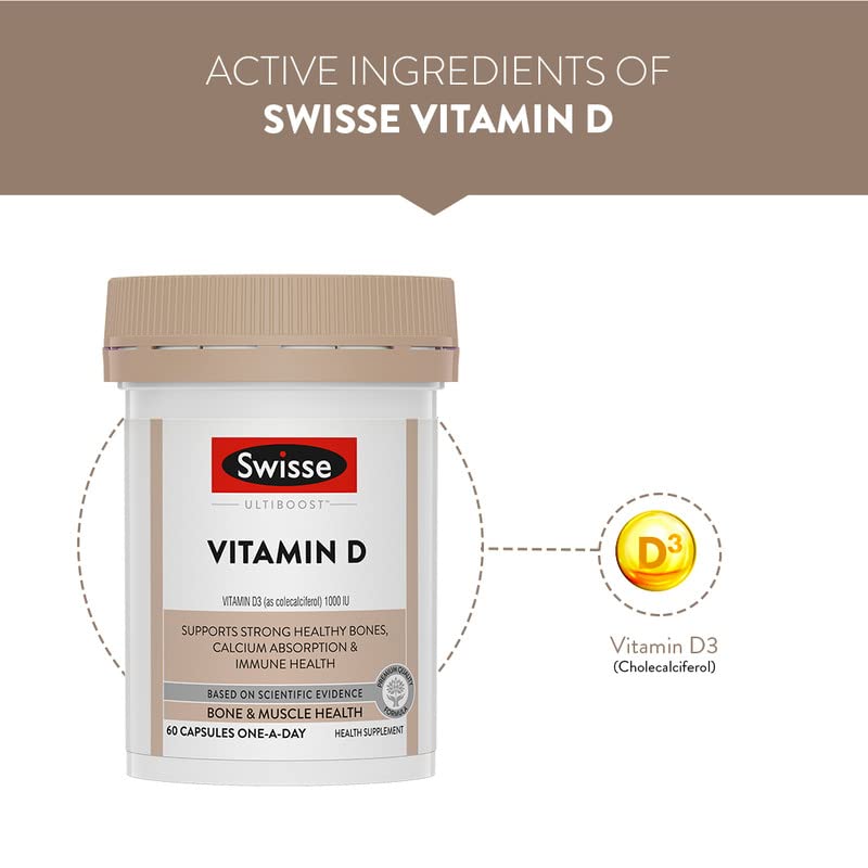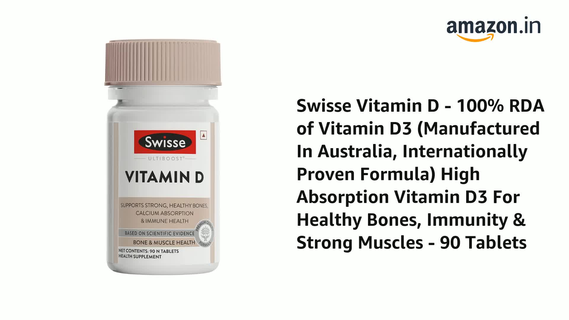 Swisse Vitamin D - 100% RDA of Vitamin D3 (Manufactured In Australia, Internationally Proven Formula) High Absorption Vitamin D3 For Healthy Bones, Immunity & Strong Muscles (90 Tablets)