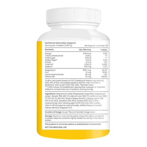 Tata 1mg Chelated Magnesium Plus Tablet with Zinc Vitamin B6 Helps To Improve Magnesium Supplement Absorption And Effectiveness For Men & Women (Pack Of 60 Tablets)