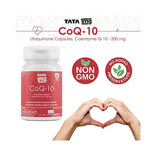 Tata 1mg CoQ 10 (Coenzyme 10) ((200mg)) Capsules, Supports Heart and Vascular Health, Promotes Healthy Cellular Function For Unisex (Pack Of 30 Capsules), 50 grams
