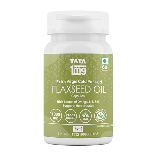 PLANT-BASED COLD-PRESSED FLAXSEED OIL: Tata 1mg Flaxseed Oil 1000mg is a plant-based cold-pressed oil. Rich source of Omega 3 6 & 9 fatty acids this veg capsule supports the healthy functioning of the heart.
