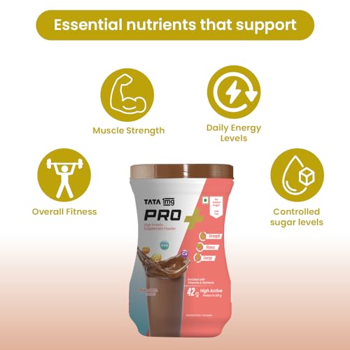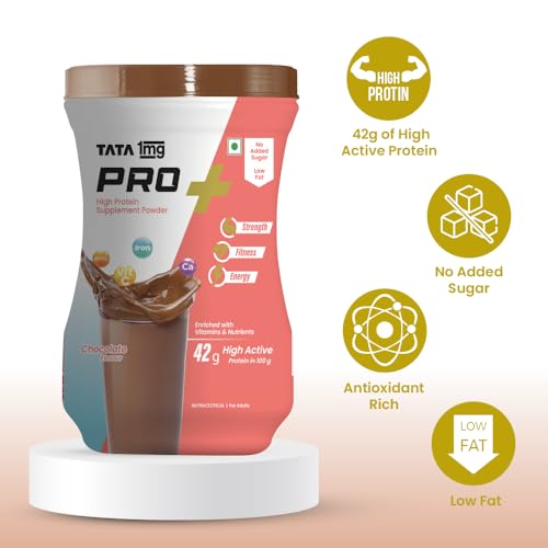 TATA 1mg Protein+ Powder (Protein supplement powder) Chocolate is a unique health supplement that contains high protein content along with other micronutrients. Protein is responsible for the proper functioning of almost all the tissues in the body: Thus sufficient protein intake is essential to support muscle mass reduce fatigue and improve skin and hair condition. Tata 1mg Pro+ Powder provides protein vitamins minerals and other nutrients which help maintain your fitness energy and overall health.