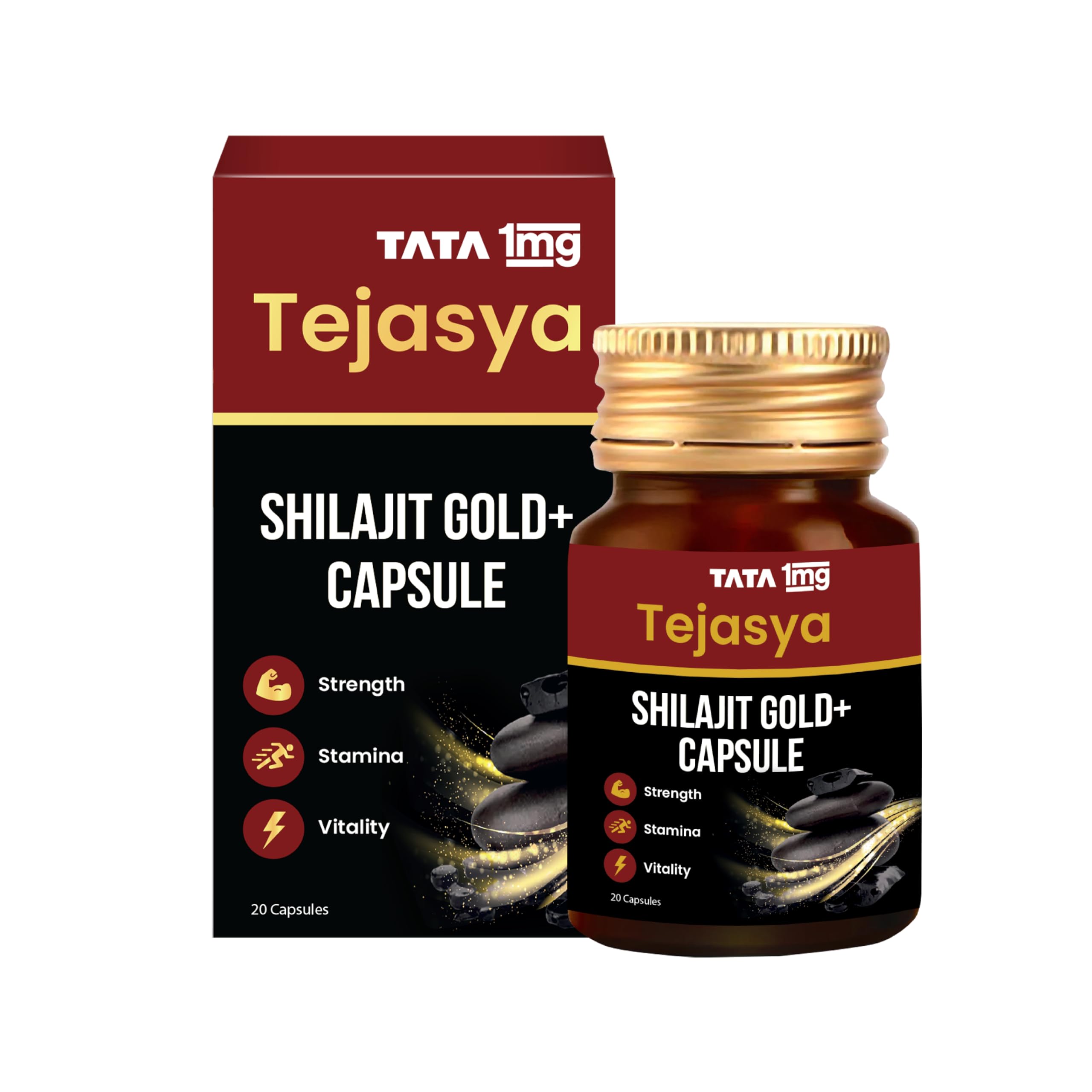 Tata 1mg Tejasya Shilajit Gold+ Capsule, Supports Strength,Stamina & Vitality,Pack of 20 Capsules
