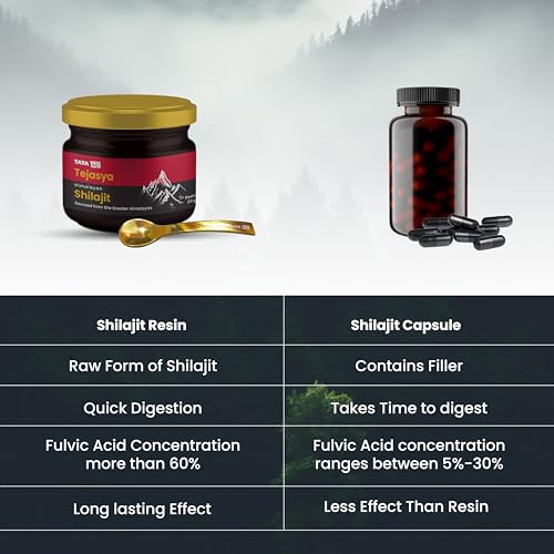 Tata 1mg Tejasya Himalayan Shilajit Resin brings the goodness of ayurvedic traditional therapy. It is sourced from high-altitude areas of the Greater Himalayas formed over centuries through the decomposition of plant matter minerals and microbial activity. Shilajit resin helps in vitality rejuvenation and immunity. It has 80+ trace minerals fulvic acid and humic acid. Tata 1mg Tejasya Shilajit Resin underscores a commitment to holistic wellness presenting a natural remedy rooted in traditional health wisdom for those seeking increased vitality and resilience.