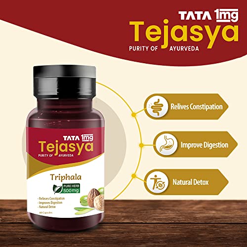 Tata 1mg Tejasya Triphala Capsule Helps In Digestion, Relieve Constipation & Detoxification (Pack of 1, 500mg)