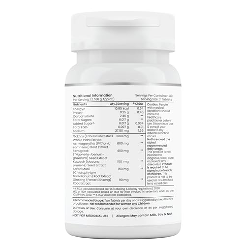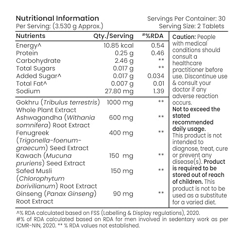 Tata 1mg Testo Booster is packed with natural ingredients that may help boost the testosterone level for overall health well-being and vitality. The goodness of Ashwagandha Gokhru Fenugreek Safed Musli Ginseng and Kawach extract promotes performance energy levels and stamina.