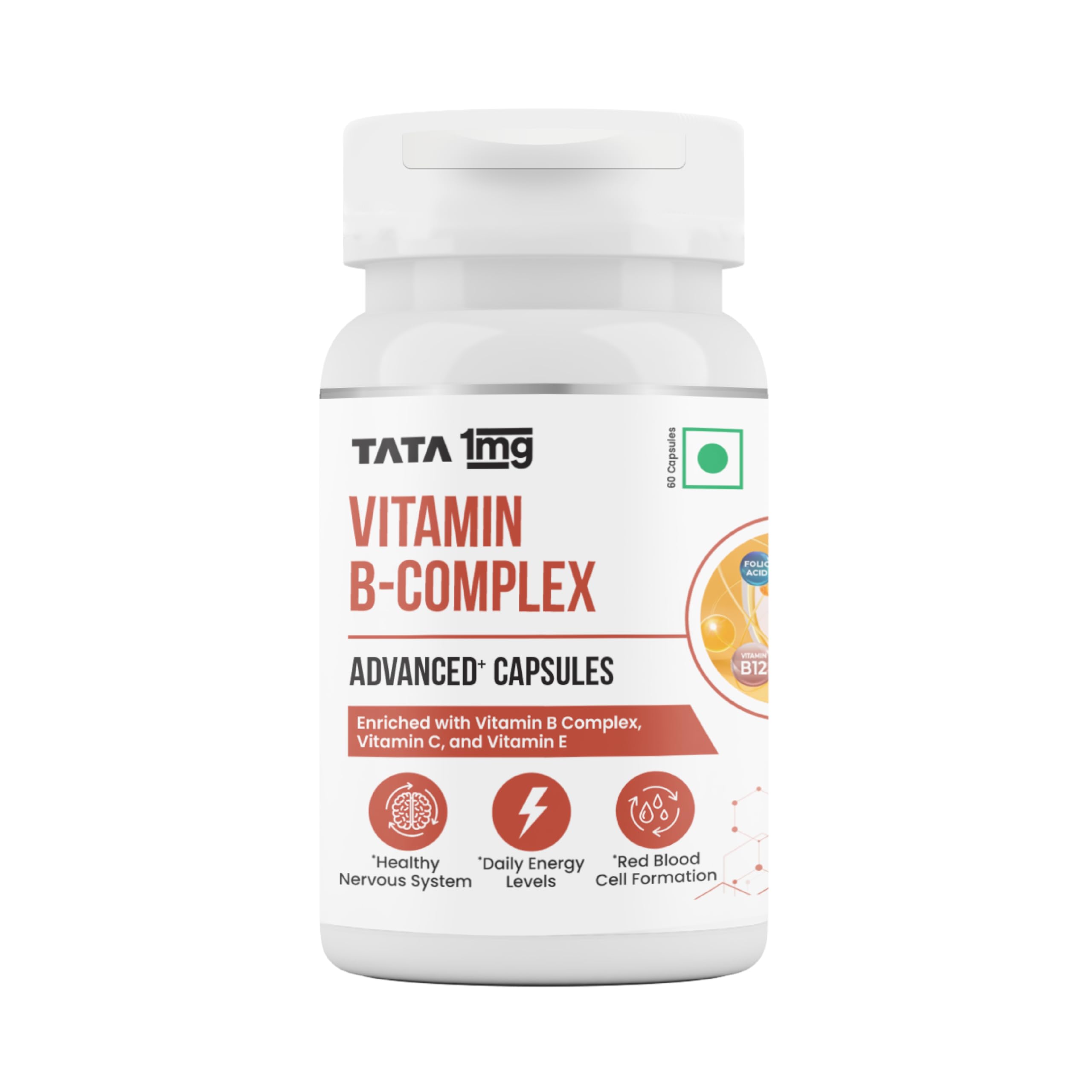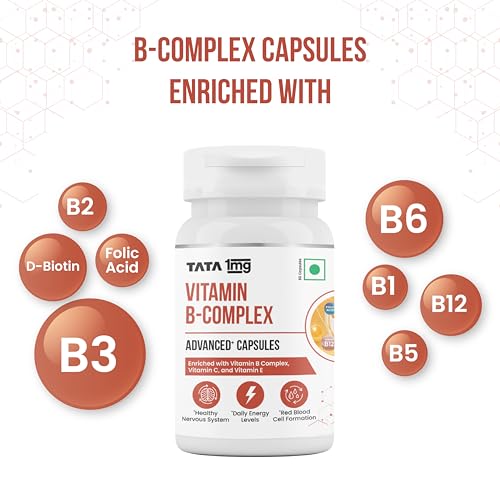 Tata 1mg Vitamin B Complex Capsules with B1B2B3B5B6BiotinHelps Maintain Energy Immunity For Women& Men Pack of 60 Capsules