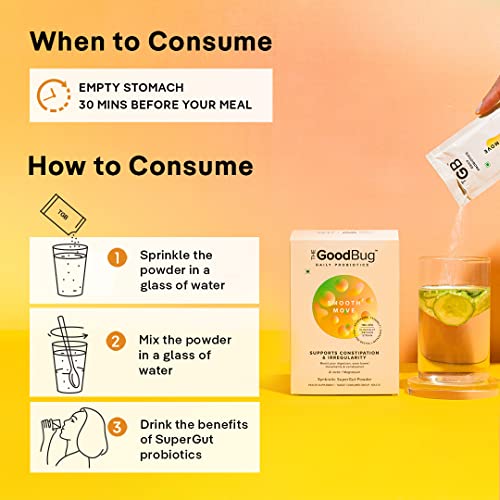 The Good Bug Smooth Move SuperGut Powder|1 Billion CFU of Clinically Proven Strains| Pre + Probiotic + Nutrients|Eases Constipation|Helps Regularise Bowel Movements|30 Days Pack, 30 grams