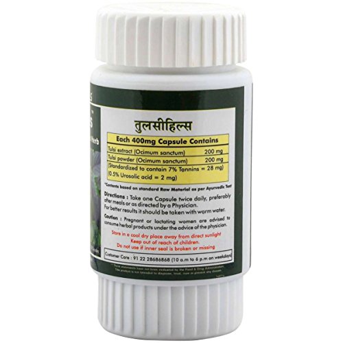 Each capsule contains Tulsi Extract 200mg Tulsi Powder 200mg Excipients: Silicon Dioxide and Gelatin Capsule