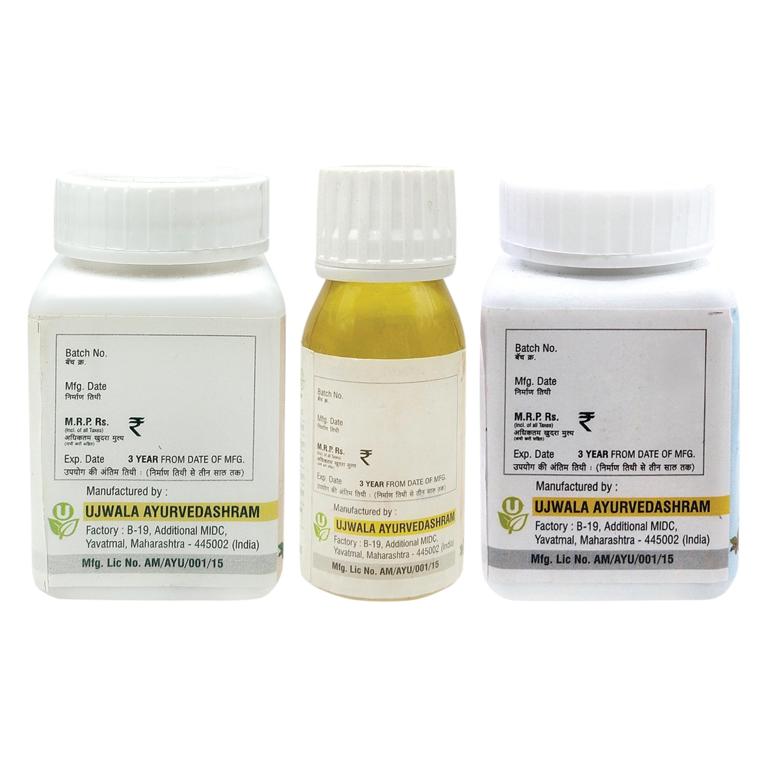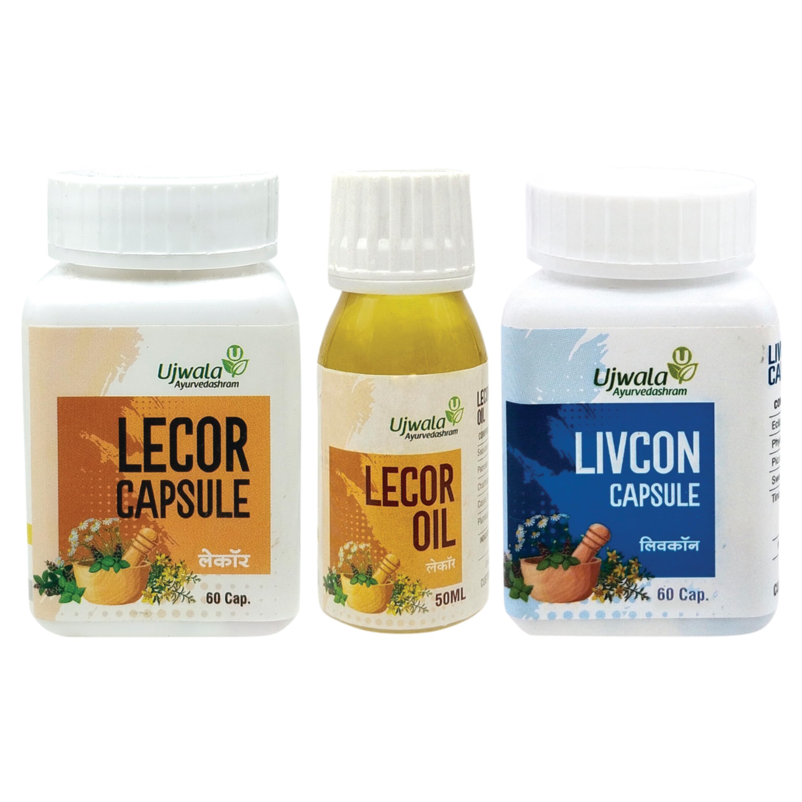Ujwala Ayurvedashram Lecor capsule Livcon Capsule and Lecor Oil Combi Kit For Leucoderma Vitiligo and White patches(3 Items in the set) 3 count