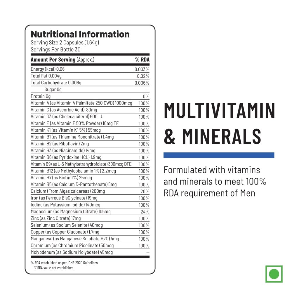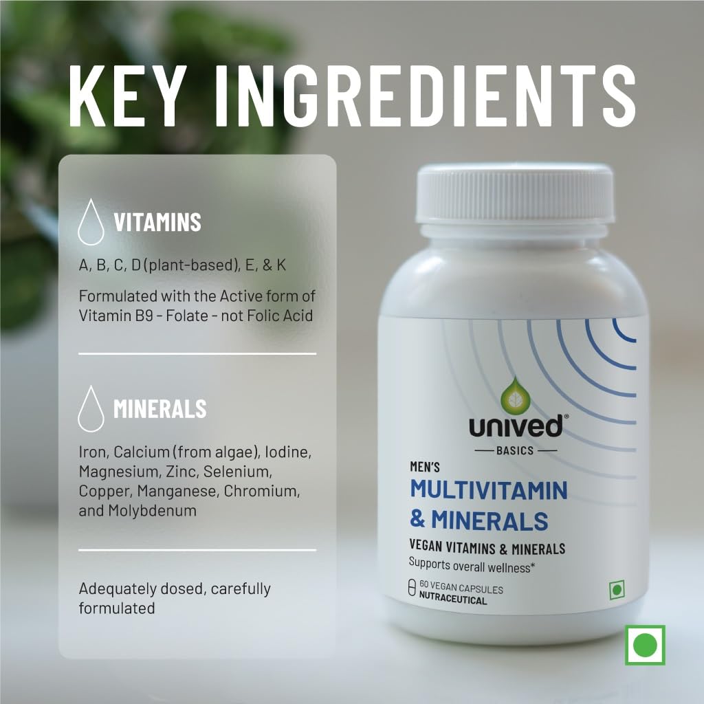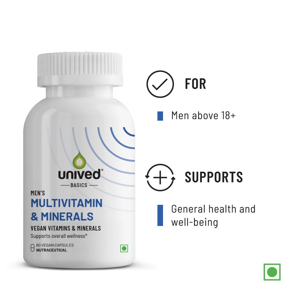 HomeHealth & PersonalDiet & NutritionHealth SupplementsUnived Basics Multivitamin & Minerals Capsule For Men|100% Rda Of All Vitamins With Algae Calcium & Plant-Based Vitamin D3 Plus Important Minerals|Complete Formulation For Health & Wellbeing1 Count