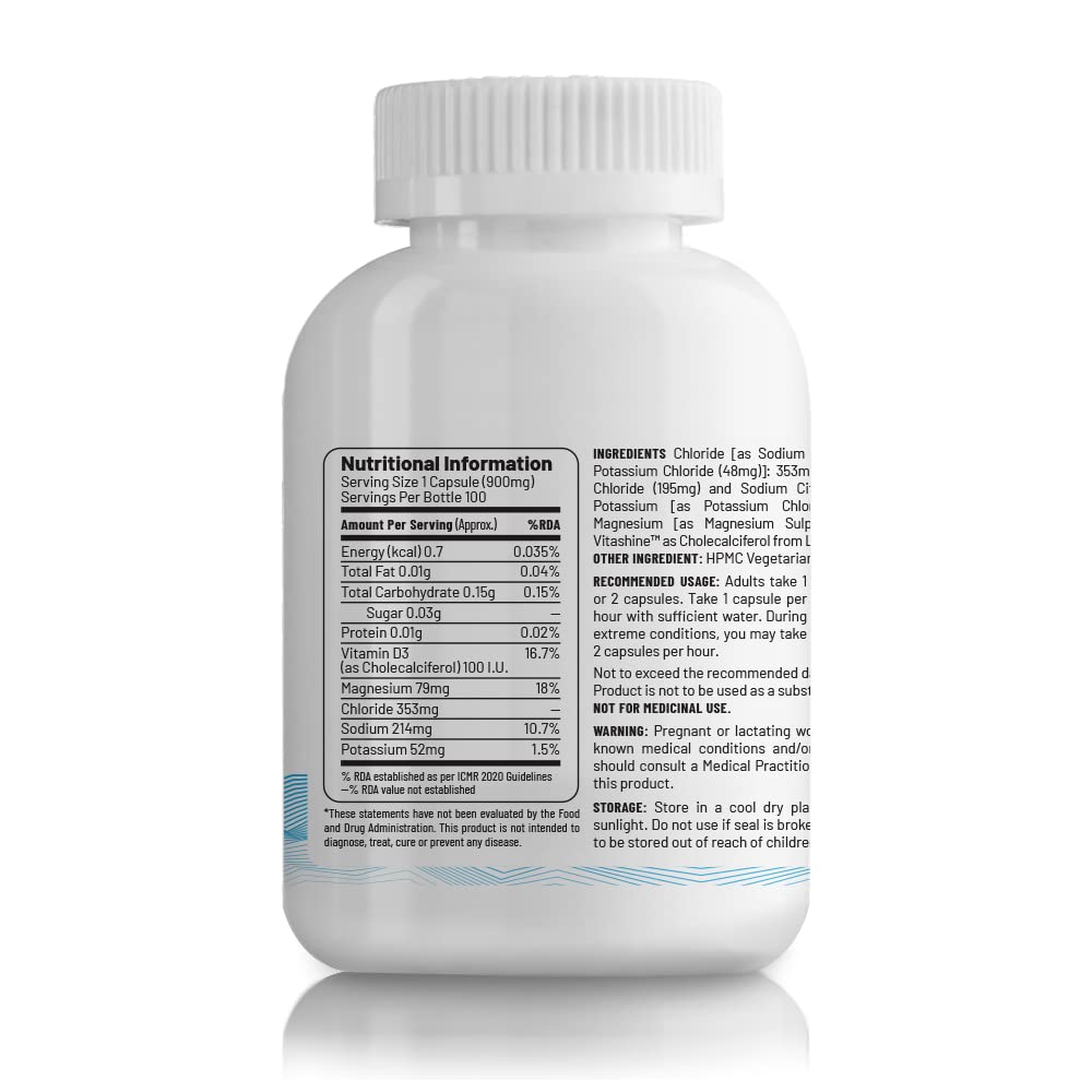 Electrolyte Salt Caps are electrolyte capsules with a unique formulation that deliver the full-spectrum of vital electrolytes (sodium chloride potassium and magnesium) and vitamin D3 to sustain optimal bone health and immune function during intense endurance activities like ultramarathons brevets and triathlons. Electrolyte Salt Caps are highly bioavailable immediately releasing an instantaneous supply of essential fueling nutrients.