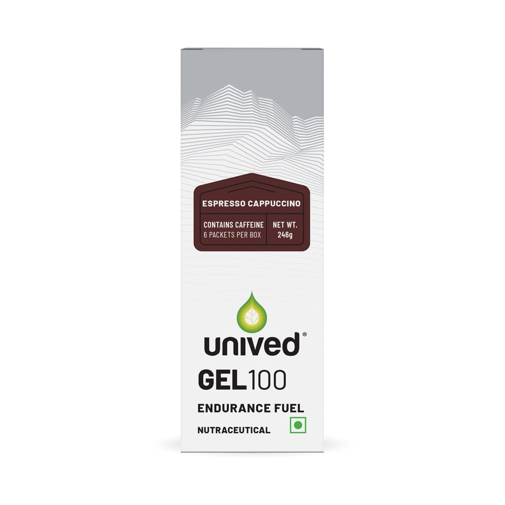 Unived Gel 100 - Vegan Energy Gel for Endurance Athletes Runners & Cyclists - 100kcal - Espresso Cappuccino - 100mg Caffeine - Pack of 6