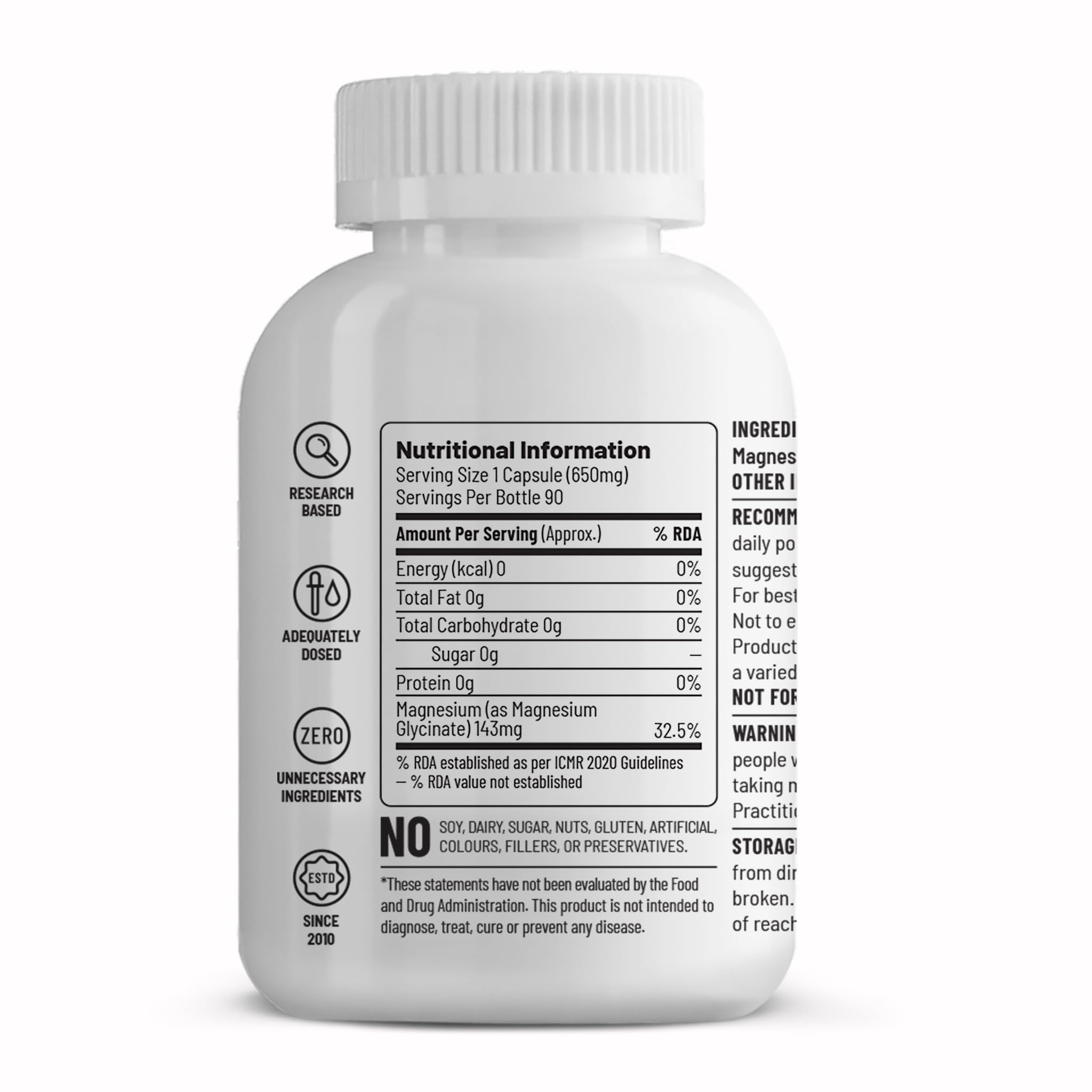 22% ELEMENTAL MAGNESIUM - 650mg Magnesium Glycinate Chelated Buffered of which Elemental Magnesium is 143mg per capsule. Adequately dosed formulation.