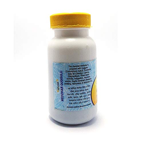 This Classical mediciine is prepared eith Guggulu (commiphora mukul) Excessive body fat(Obesity) Lipoma Elephantiasis Rheumatoid Arthritis InDigesstionn Anorevia Worms Kapha dominant diseses swelling heavyness of abdomen etc.