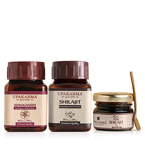 UPAKARMA Combo Pack of 90 Ashwagandha Extract Capsules 90 Shilajit Extract Capsules and 15g Shilajit/Shilajeet Resin Pack