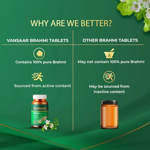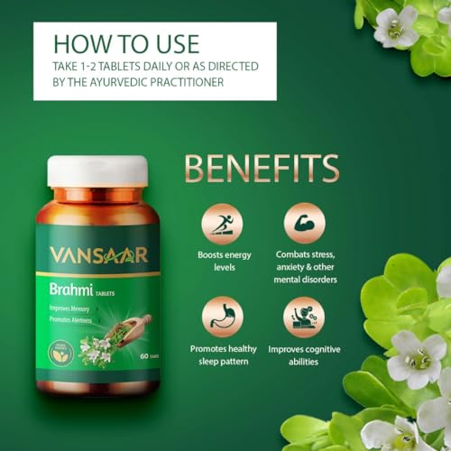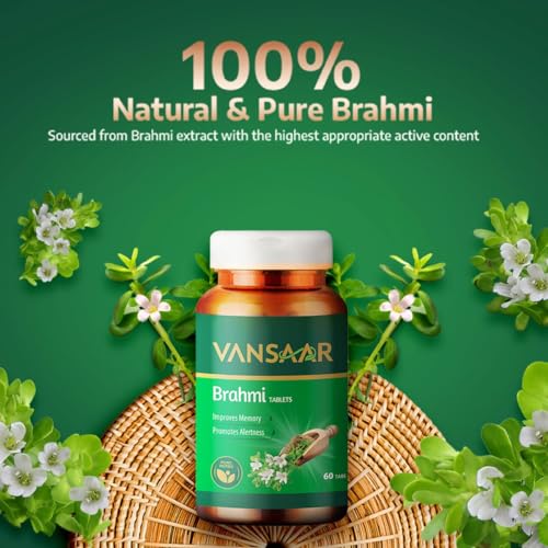 • Improves cognitive ability: Brahmi is a natural herb that supports brain health. Vansaar Brahmi tablets act as a natural nutrition for your brain and helps improve concentration focus and learning ability. It is also known to promote cognitive ability ale