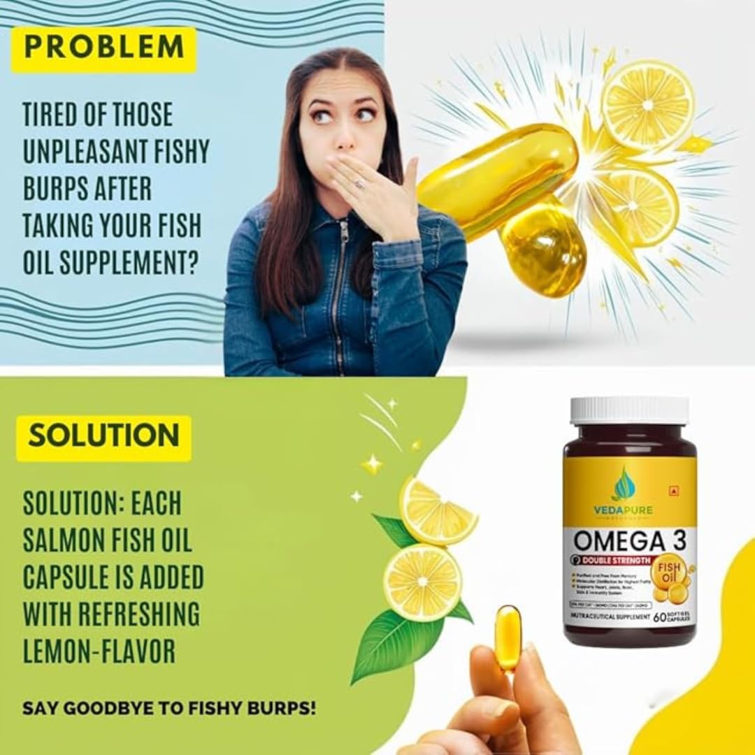 Vedapure Naturals Marine Collagen Powder & Omega 3 Fish Oil Capsule Combo is a complete health supplement designed for both men and women. It supports heart brain joint muscle and skin health with the combined power of marine collagen and Omega-3 fatty acids. Ideal for daily use it promotes overall wellness youthful skin and active living.
