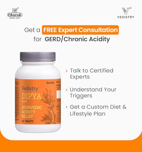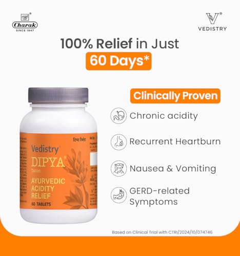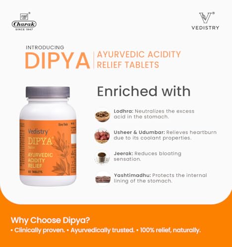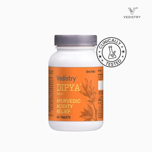 Vedistry Dipya Acidity Relief Tablet | Natural & Safe Ayurvedic Antacid | Enriched With Yashtimadhu, Amla, Usheer. Jeerak | 60 Tablets